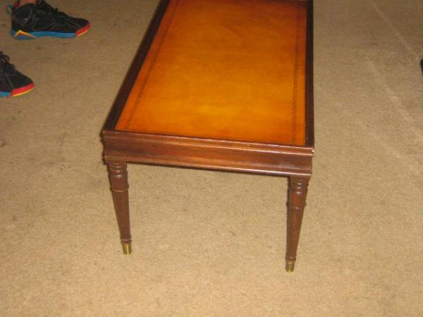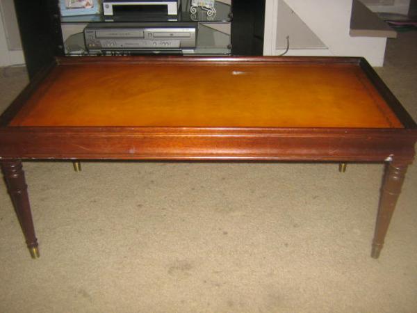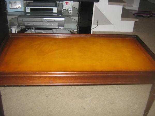 This is a leather top coffee table. I know nothing about it my grandfather gave it to me.