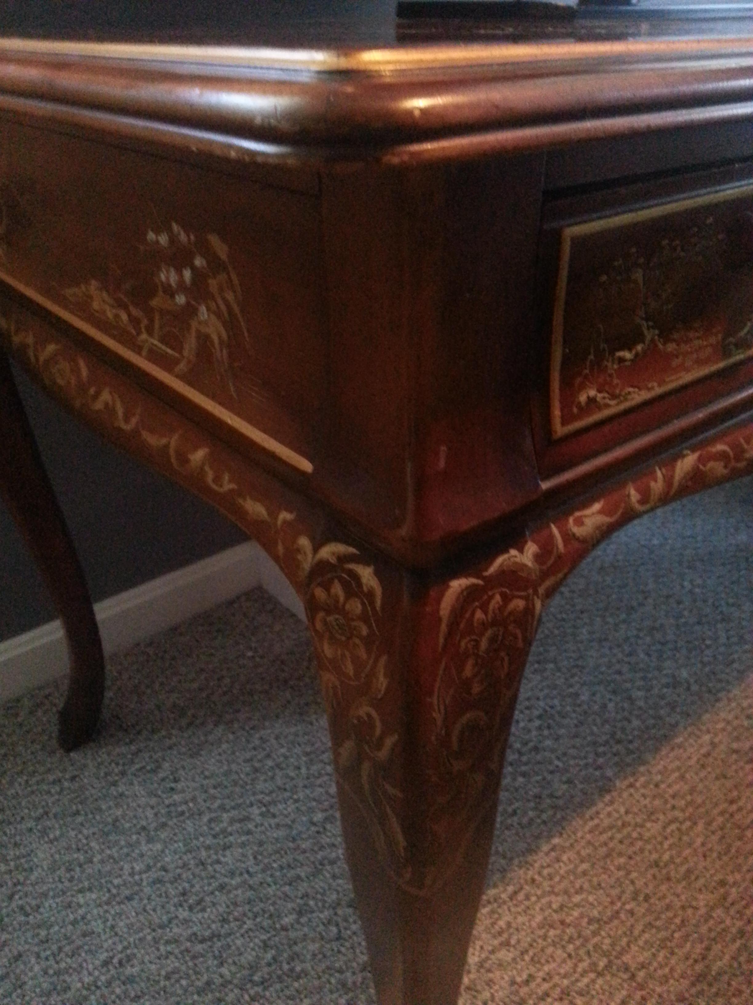 Leather top desk w/3 drawers. I believe this to be from 1973. It's overall excellent condition with the exception of a few minor scrathes above middle drawer
