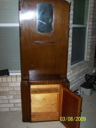 My husband bought this hall tree off craigslist because he has always wanted one. I was taking pictures of it to sell it when I found the stamp on the inside of the door and decided to research it a little more to see if we should keep it.