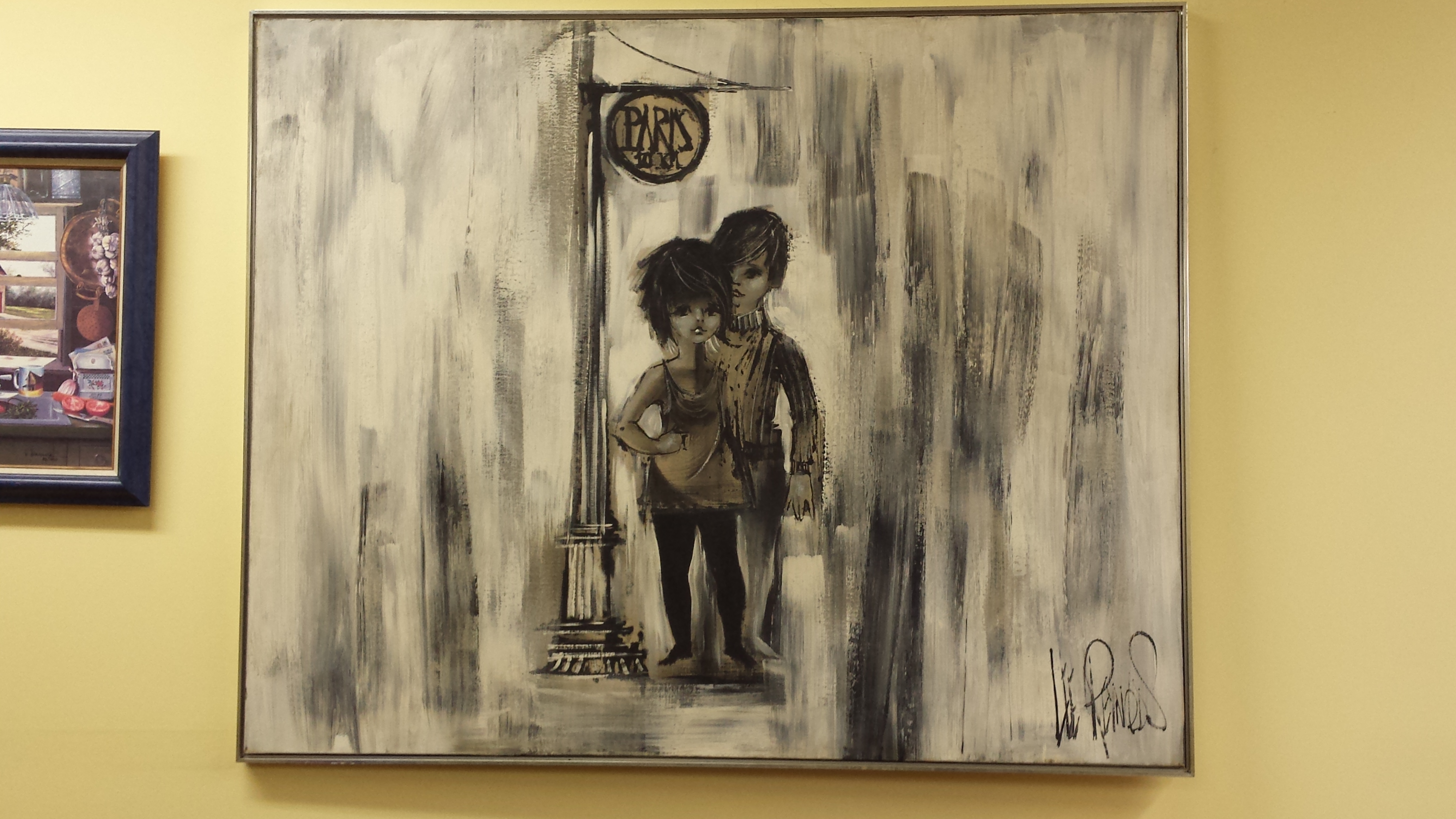Very nice Lee Renyolds oil painting. White and black with hints of beige and brown. Painting measures 60w x 48h. Frame is in fair condition. Painting is in good condition. Could use a cleaning.