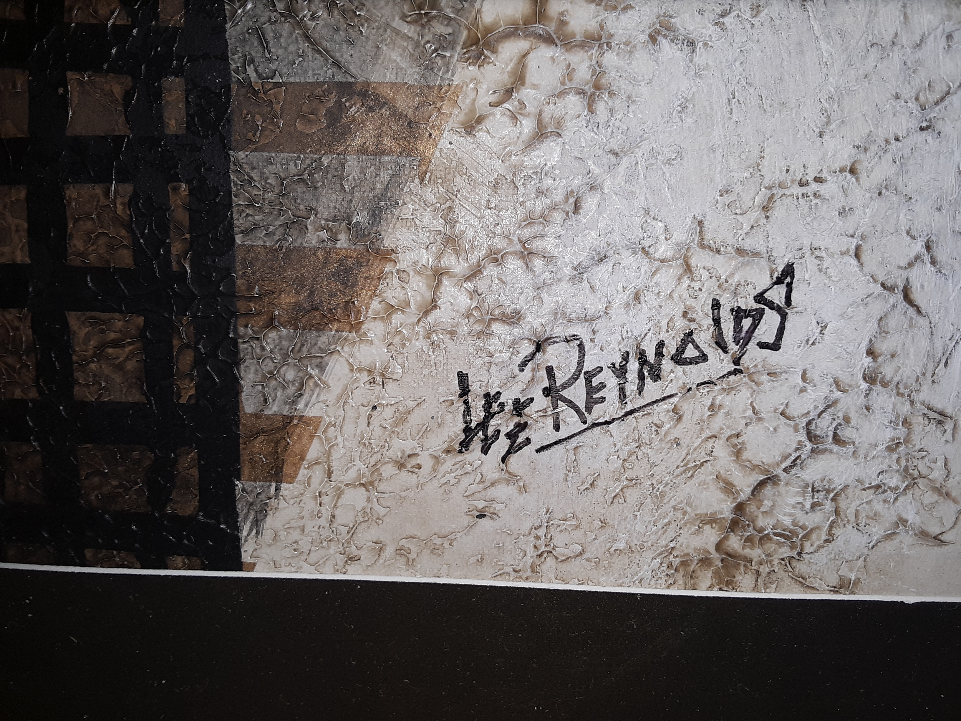 36" X 30" Abstract Oil on Canvas Painting by Lee Reynolds. Framed in a Gold Frame by Vanguard Studio's with an item number 698853.