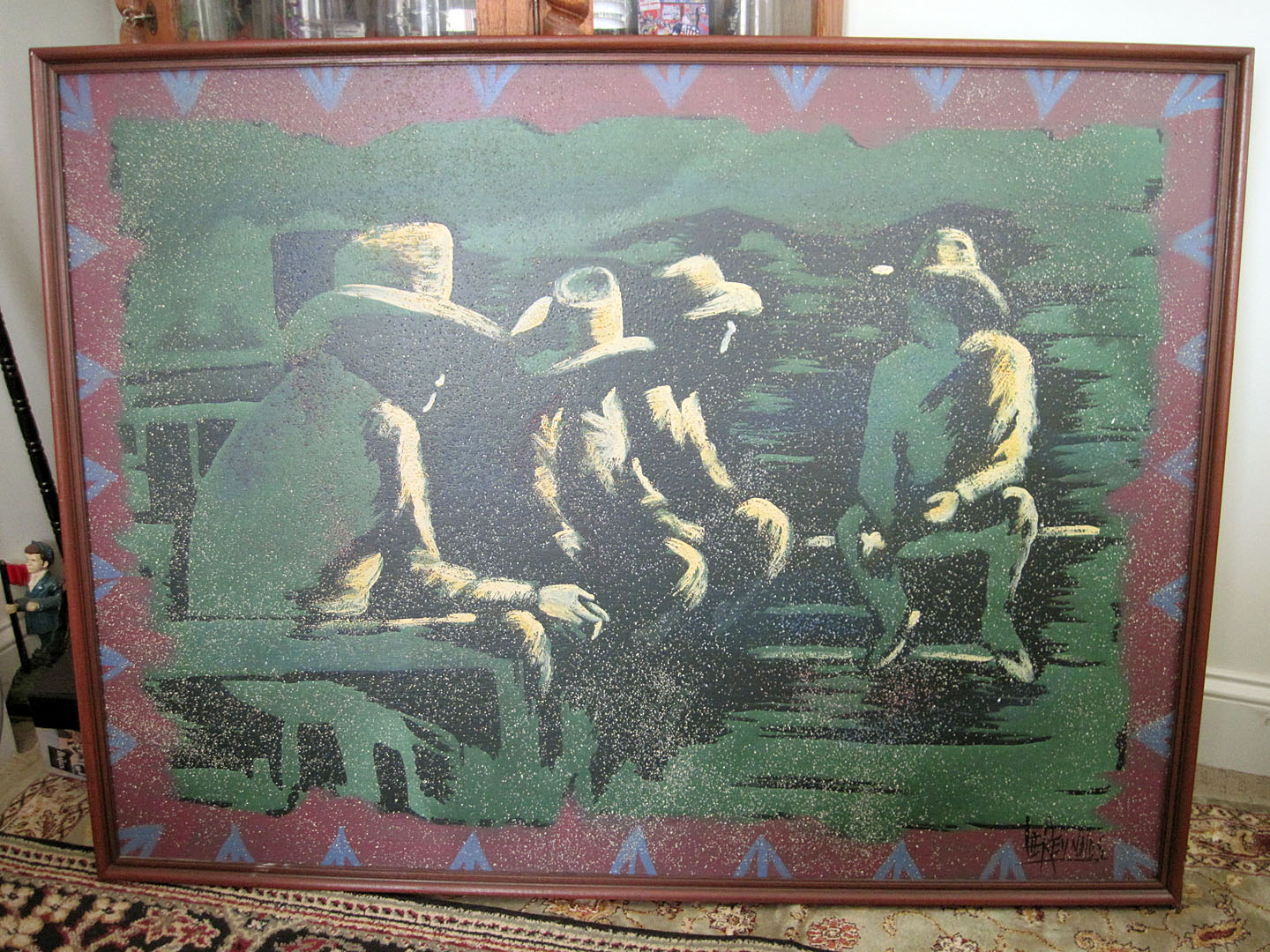 I am curious about this Lee Reynolds oil painting?   It doesn't have a Vanguard Studios sticker.  It is just numbered.  I really do not know its age.  I call it the Four Horseman.  Painting is roughly 46" x 36".   Other than that the pics tell what else I know.   From what I read the Lee part of the signature looks like it may be one done by Lee Burr.