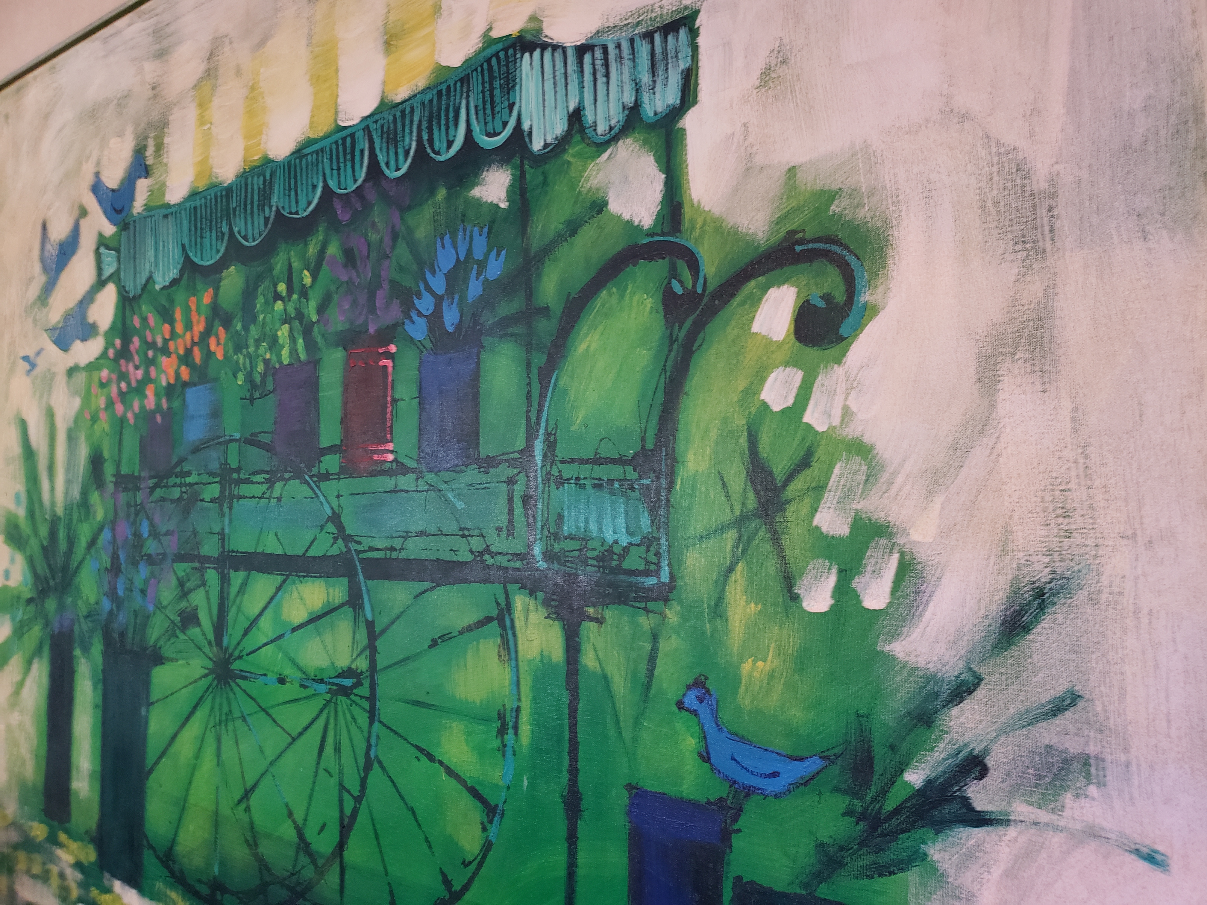Beautiful painting signed by Lee Reynolds of a flower cart. Painted in 1962 oil painting on canvas 5 x 4.