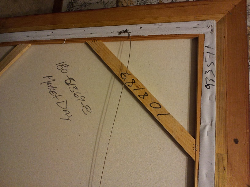 The painting is signed Lee Reynolds and there are numbers on the back, 4-108189, 180-51369-9, 9335-11 and the words Market Day. There is no stamp to indicate vanguard studios as I am aware there were a large number of paintings done by Vangaard studios under the name Lee Reynolds, that were not painted by Lee Reynolds (Burr), but by staff artists. I understand Mr Burr painted a number of paintings under the name of Lee Reynolds, but has stated he painted no more than a few dozen such paintings. I'm trying to find out if this is an original painted by Lee Reynolds Burr or if there is a way to tell. Also, what would be the approximate asking price should I decide to sell it? Thanks for sharing your time and talent with a non-artist type.