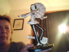 I bought this figurine of a duck at a garage sale for 50 cents. The duck is yellow and sits atop a white egg that has a pink ribbon around it with yellow flowers on it. The serial number is 05919 and is dated 1987