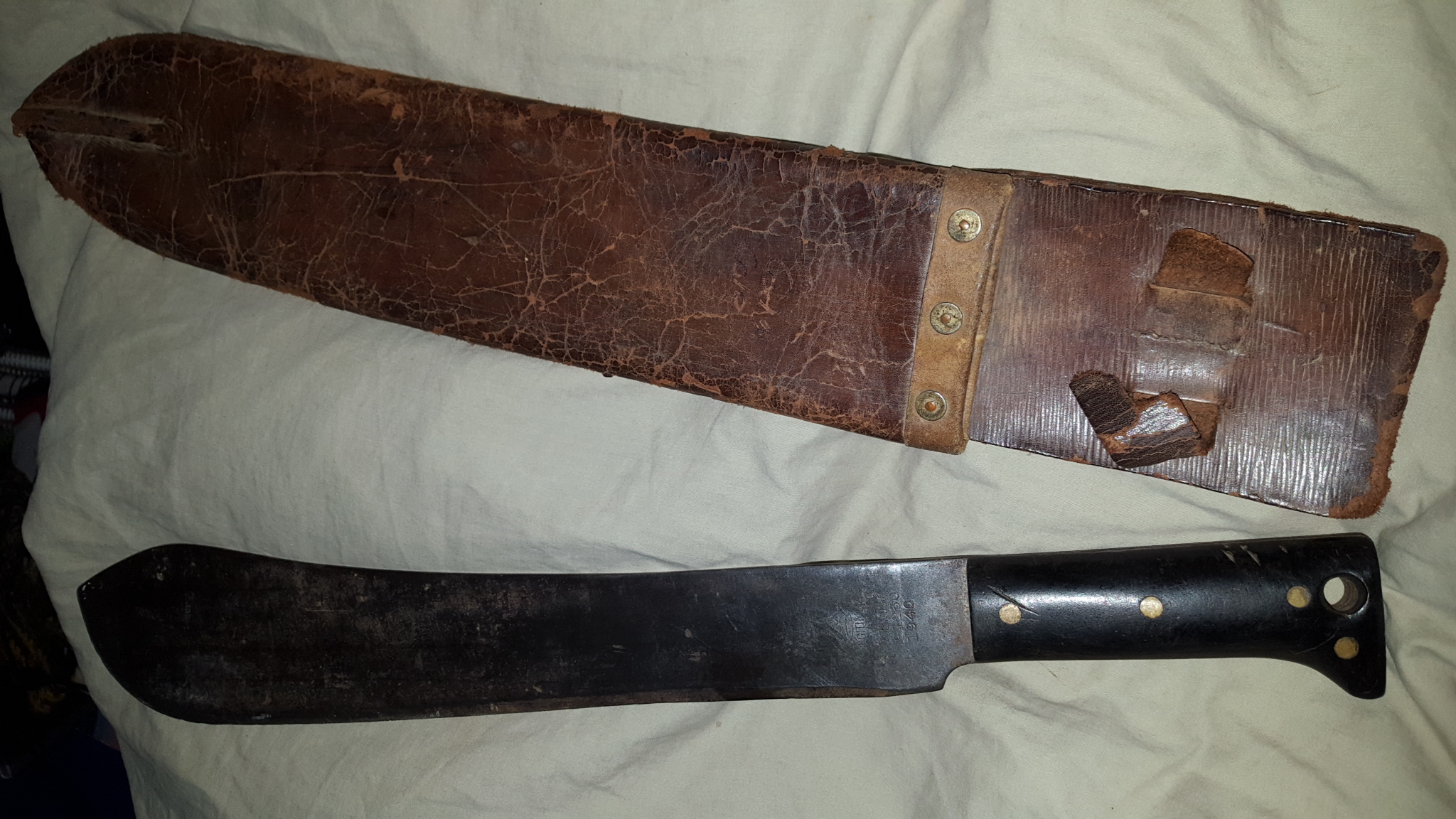 Legitimus & Collins Co. 1940 machete No. 1250. My grandfather used this machete when he was in world War I I. He was a tank commander in General Pattons 3rd Army.