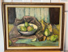 Keywords to include: vintage floral art, mid-century still life, signed oil painting, traditional wall décor.