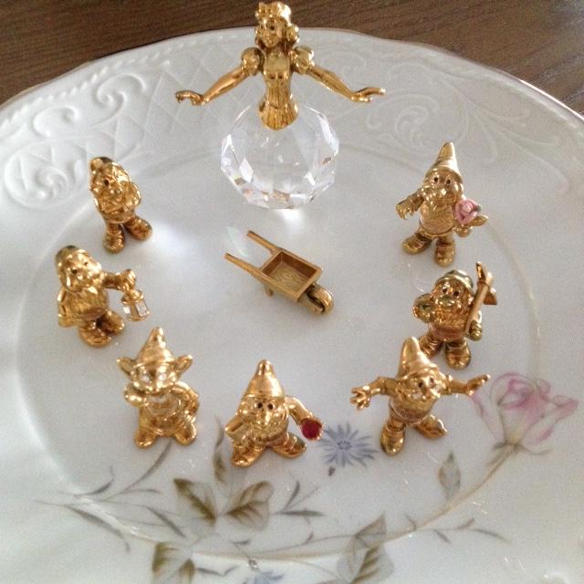These figures are on excellent condition. I understand these were produced in 1984, and Snow White's dress is crystal and the Dwarf's bodies are crystal as well. Any help in the value of these would be appreciated. The plate is not part of the collection, only used as a prop.
