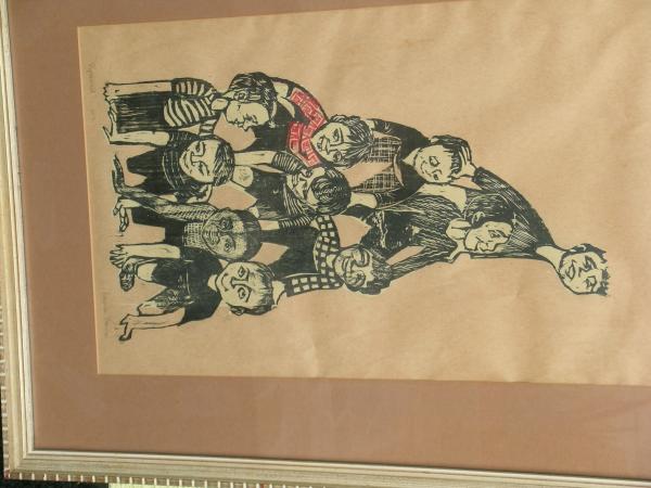 ten children forming a pyramid one with red shirt with different expressions and attire 4 then 3 then 2 then 1 forming a pyramid signed by leona pierce edition 6