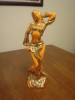 See images. This has been in storage for 10 yrs and needs cleaning. It has slight damage to left thigh with a chip and some cracks in glaze. Colors are rich and artists signiture was scribed before firing.