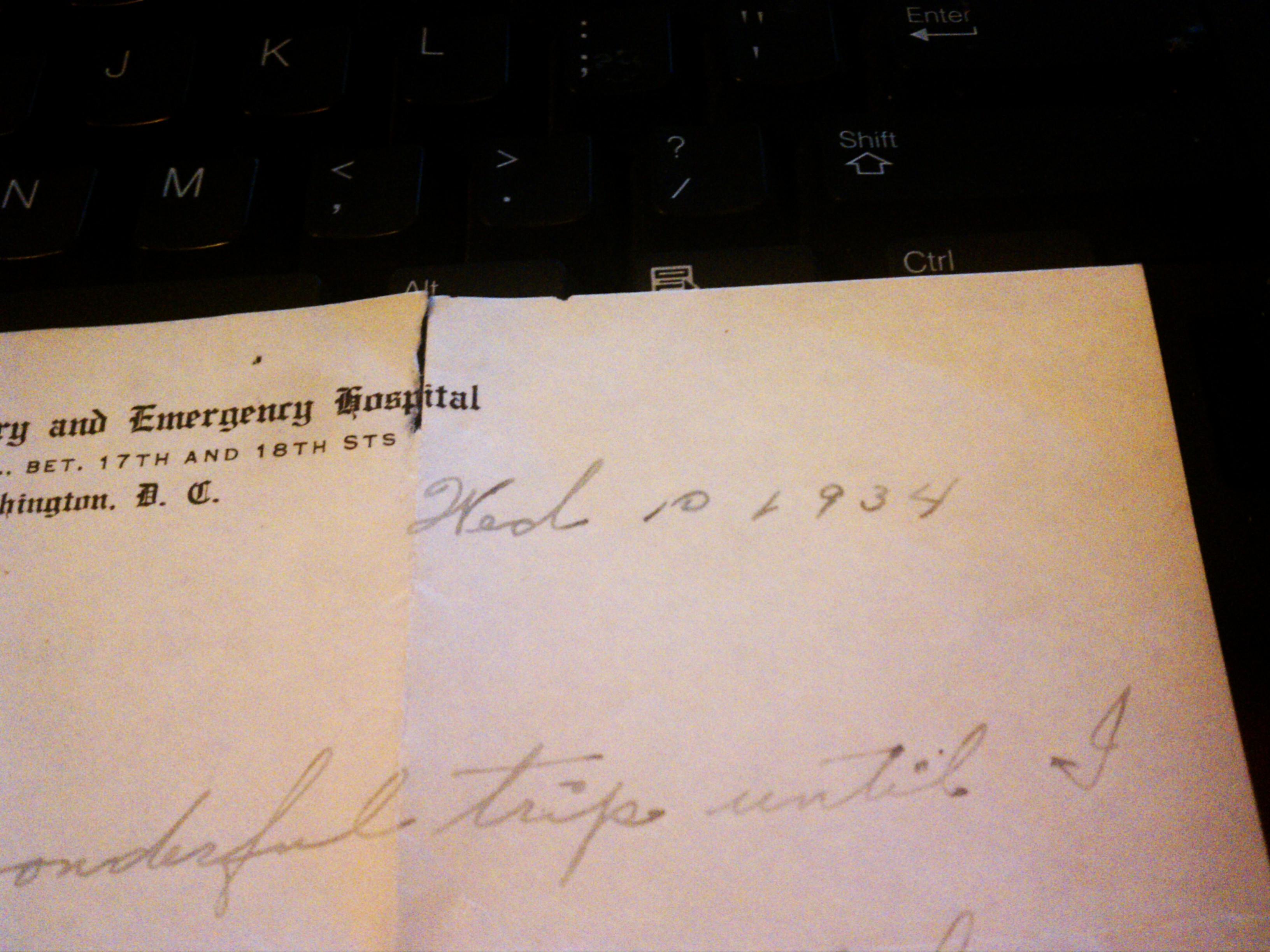 I have this letter that is dated 1934 from the central dispensary and emergency hosptial the letter is to a man named dan. the person writting the letter is telling this man that they made it to washington and as soon as they arrived they got sick. something about their apendix and had been in the hospital for eight days. then say that while in hospial they got their patent and have sold alot of ties. they go on to promise to patent this mans idea as soon as they return to california. i cant make out the signiture at the bottom of the letter. i would like to find out who wrote this letter and what it might be worth if anything