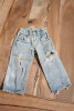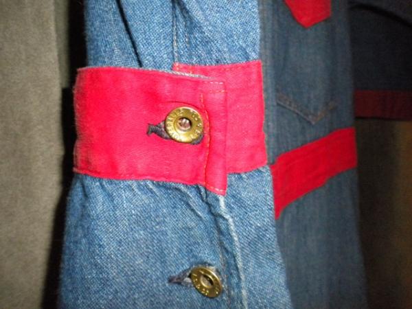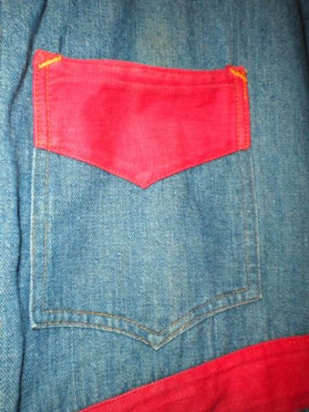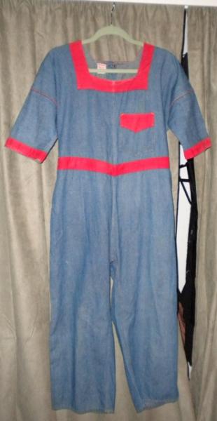 This is a pair of adult-sized Koveralls, which were specially made for factory operators to wear during exhibitions of sewing techniques at fairs. The style was really just for kids, so these were never on the market. They date to about 1915. This is what the historian from the Levis company emailed me