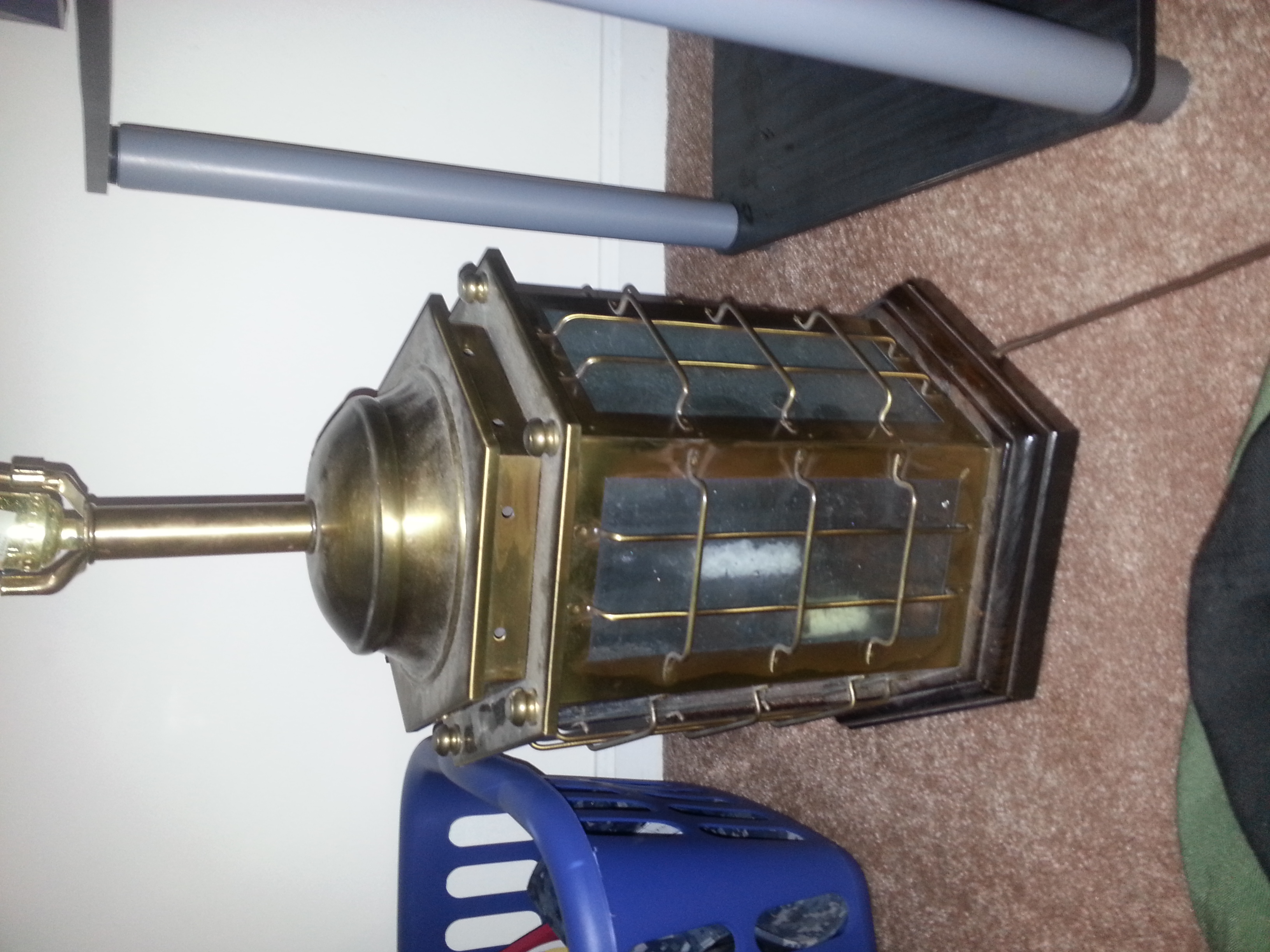 It was a gift from my ex girlfriends parents. Says j-7991 and e-51054 on it. Looks nautical to me. They told me ot was very expensive and old. It still has the old plug on it and looks to be brass maybe. I can't find anything on it.