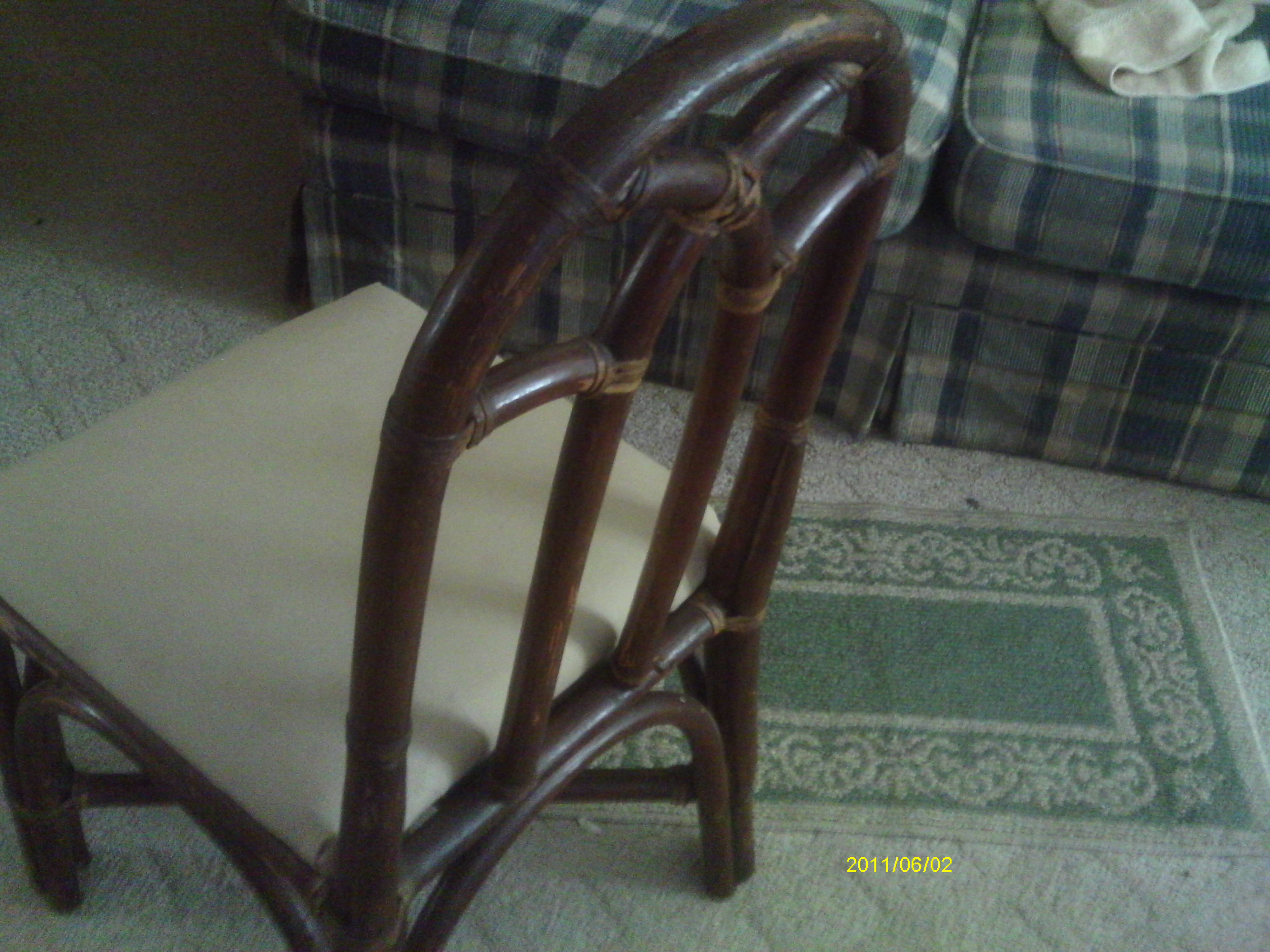 I have 4 chairs that I got free. They are not like any chairs I have ever seen. They are bent wood with leather straps that are wound around the joints. They are made of some kind of wood that has been bent. Very unique style. Can not find anything close to this type of chair anywhere. Looks like a dining chair but not sure.