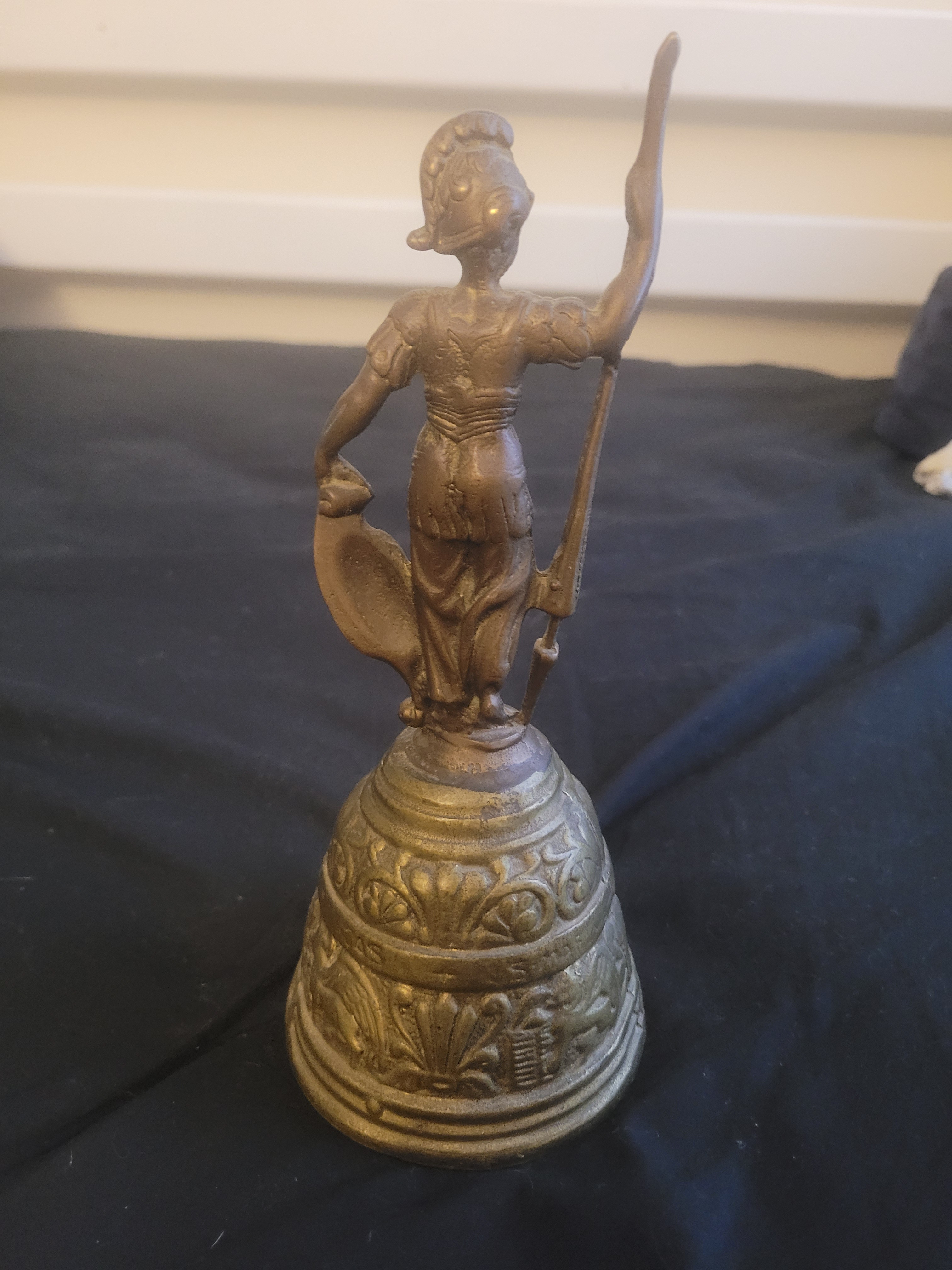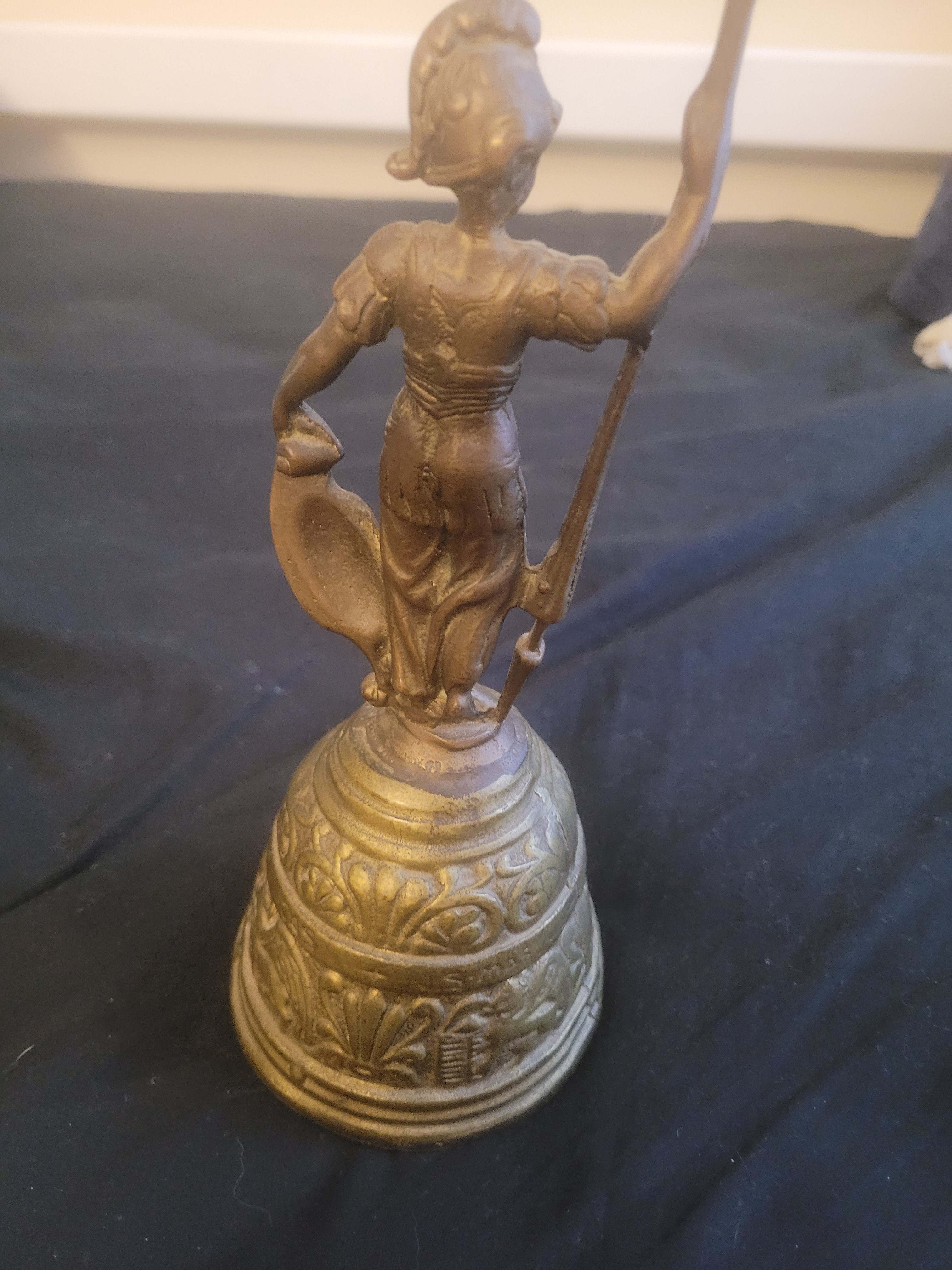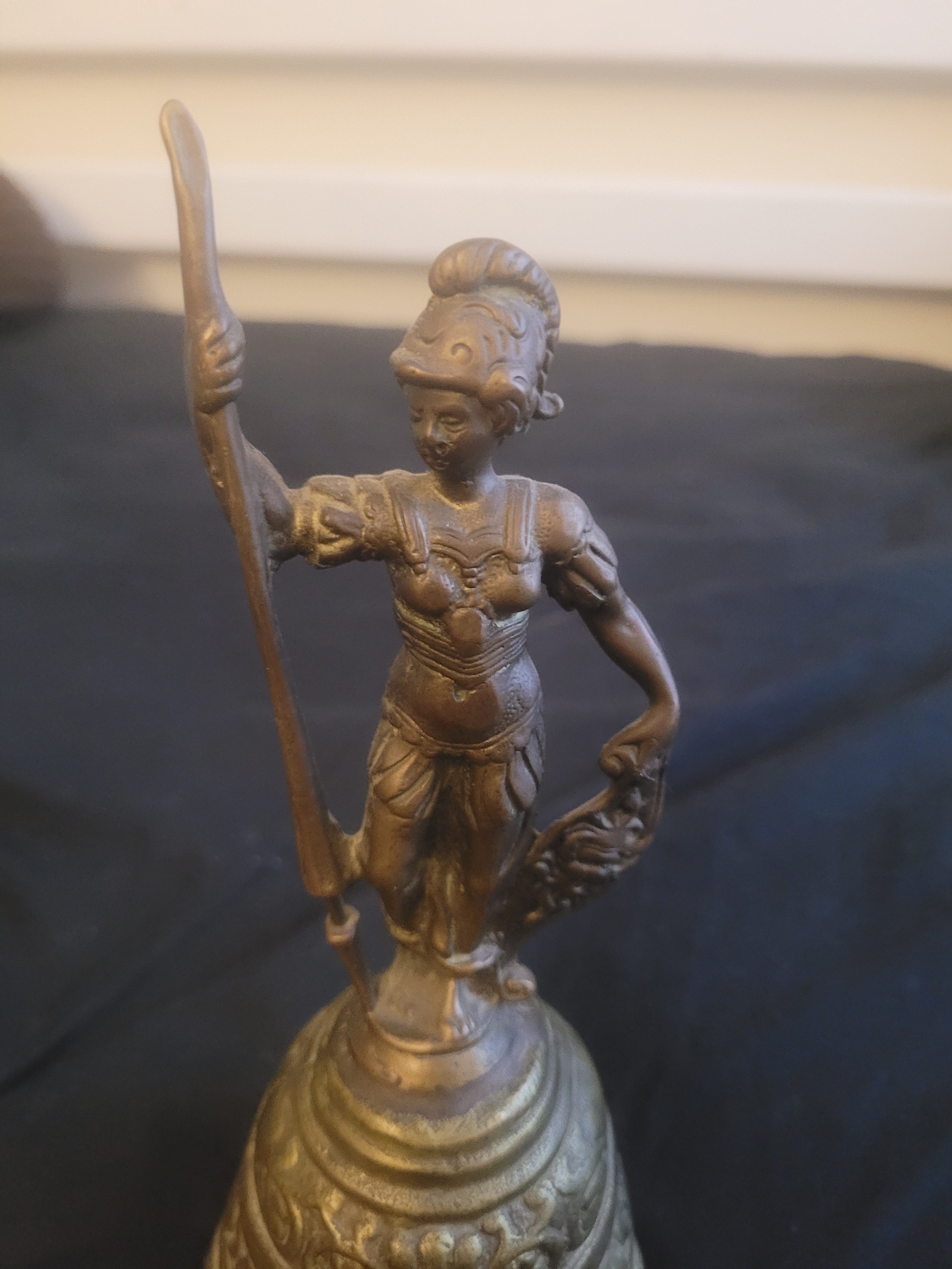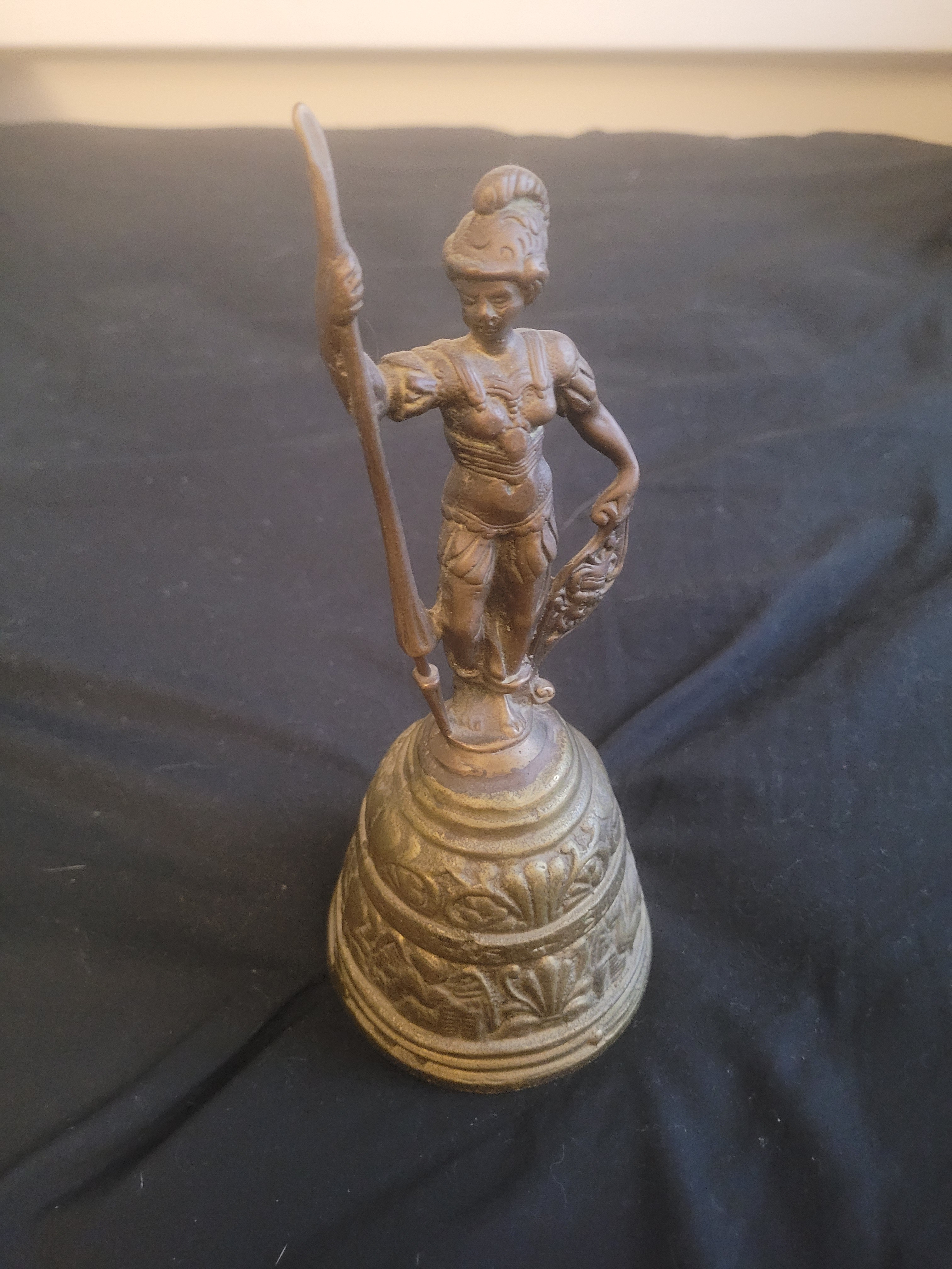 Antique Italian Grand Tour Bronze Bell Featuring Roman Soldier