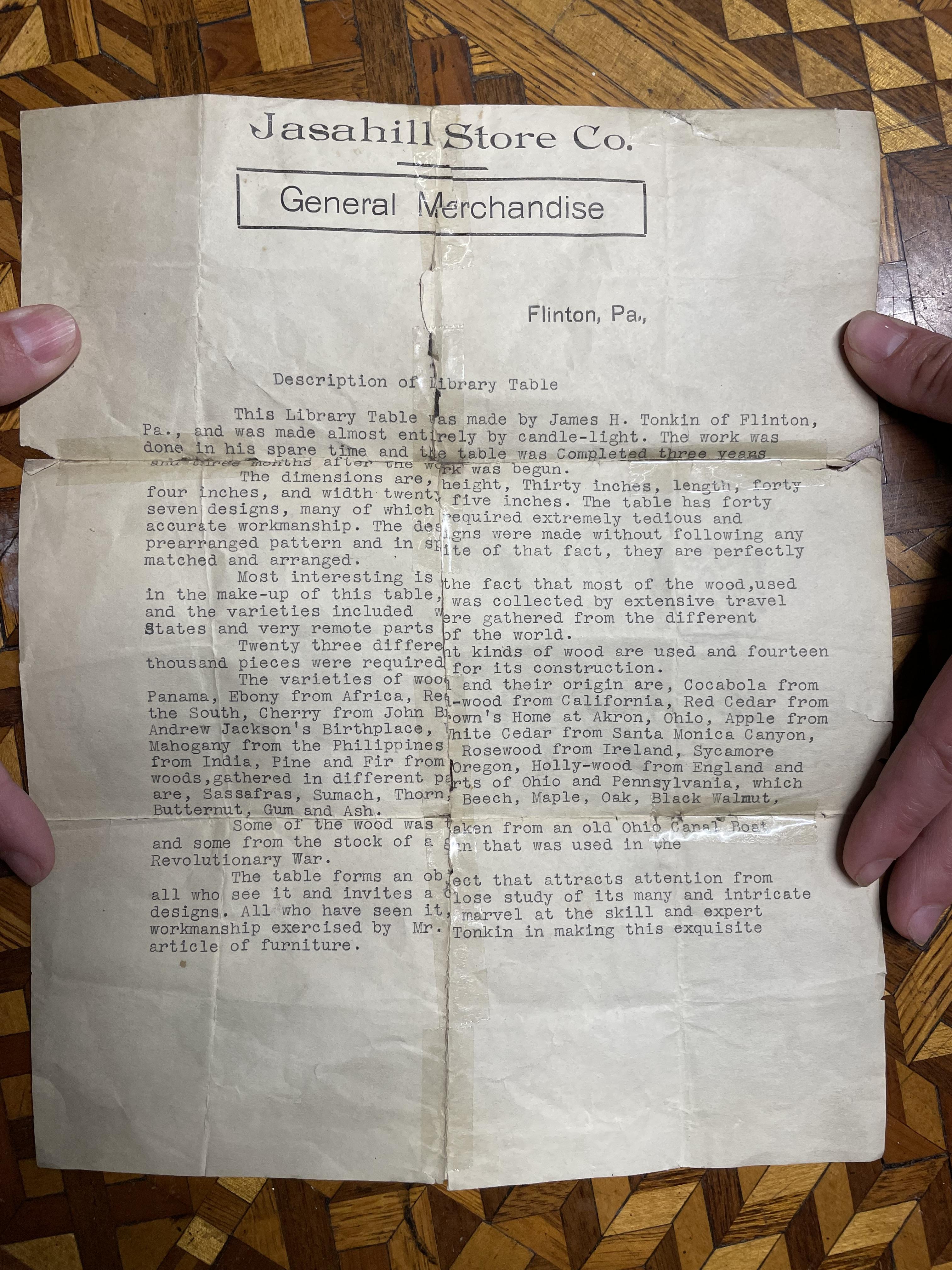 Made by James H Tonkin of Flinton, PA