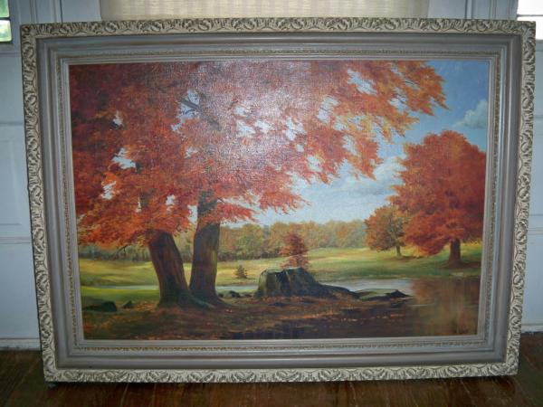 Lovely Autumn scene by Hans Liebl. In original frame.