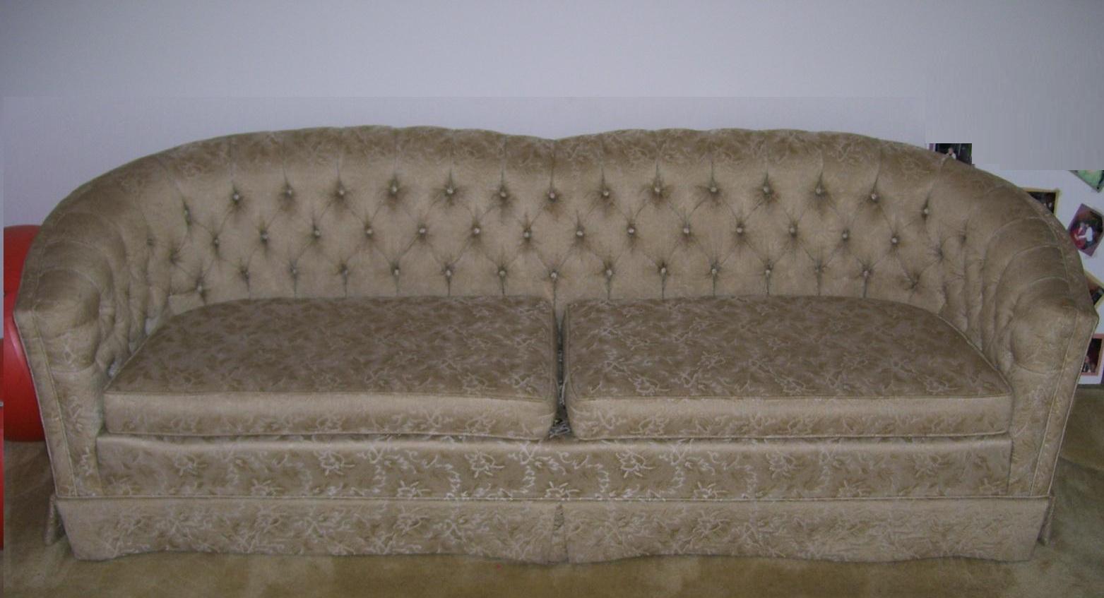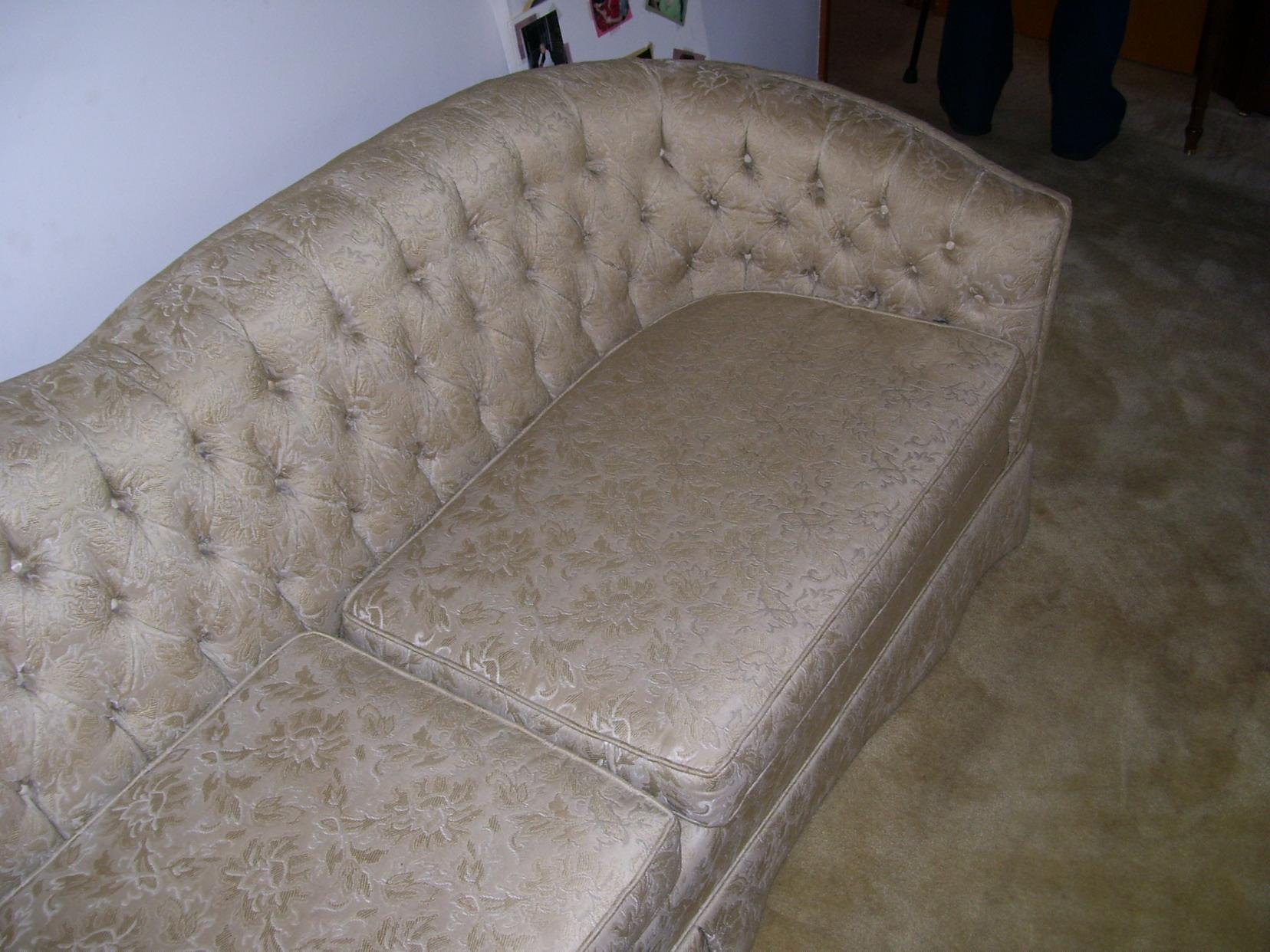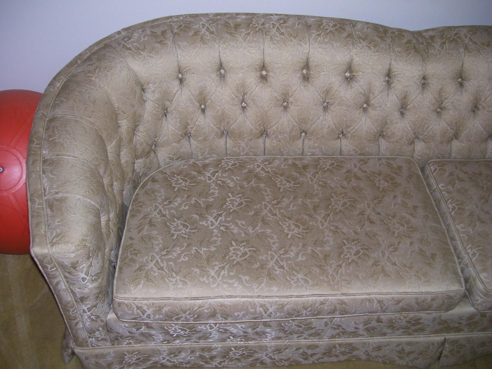 Well, it looks relatively modern, certainly not antique, but without physically examining it , it's hard to tell if it dates from the 1920's or 50's. Values for upholstered furniture right now is very weak, everyone is liquidating their parents estates and downsizing, flooding the market with such pieces. These often go at auction for under $200.00, even if in very good condition.