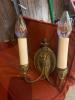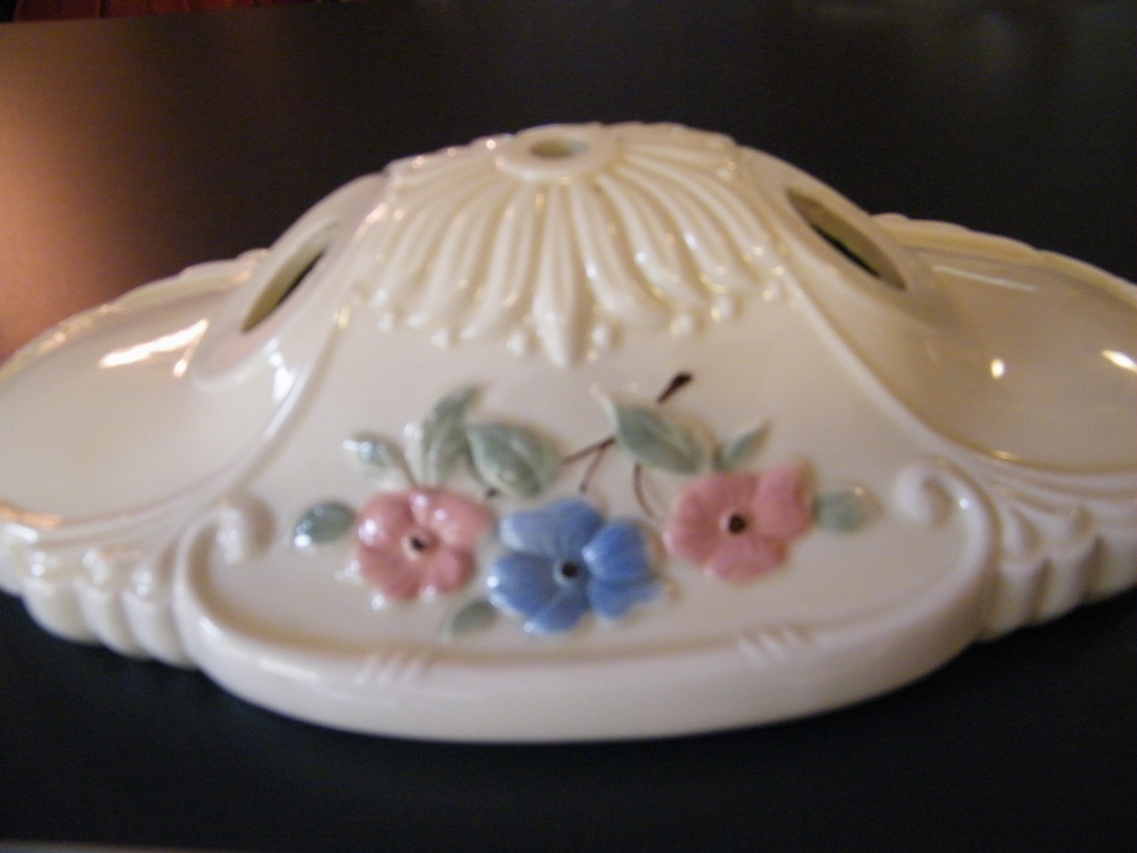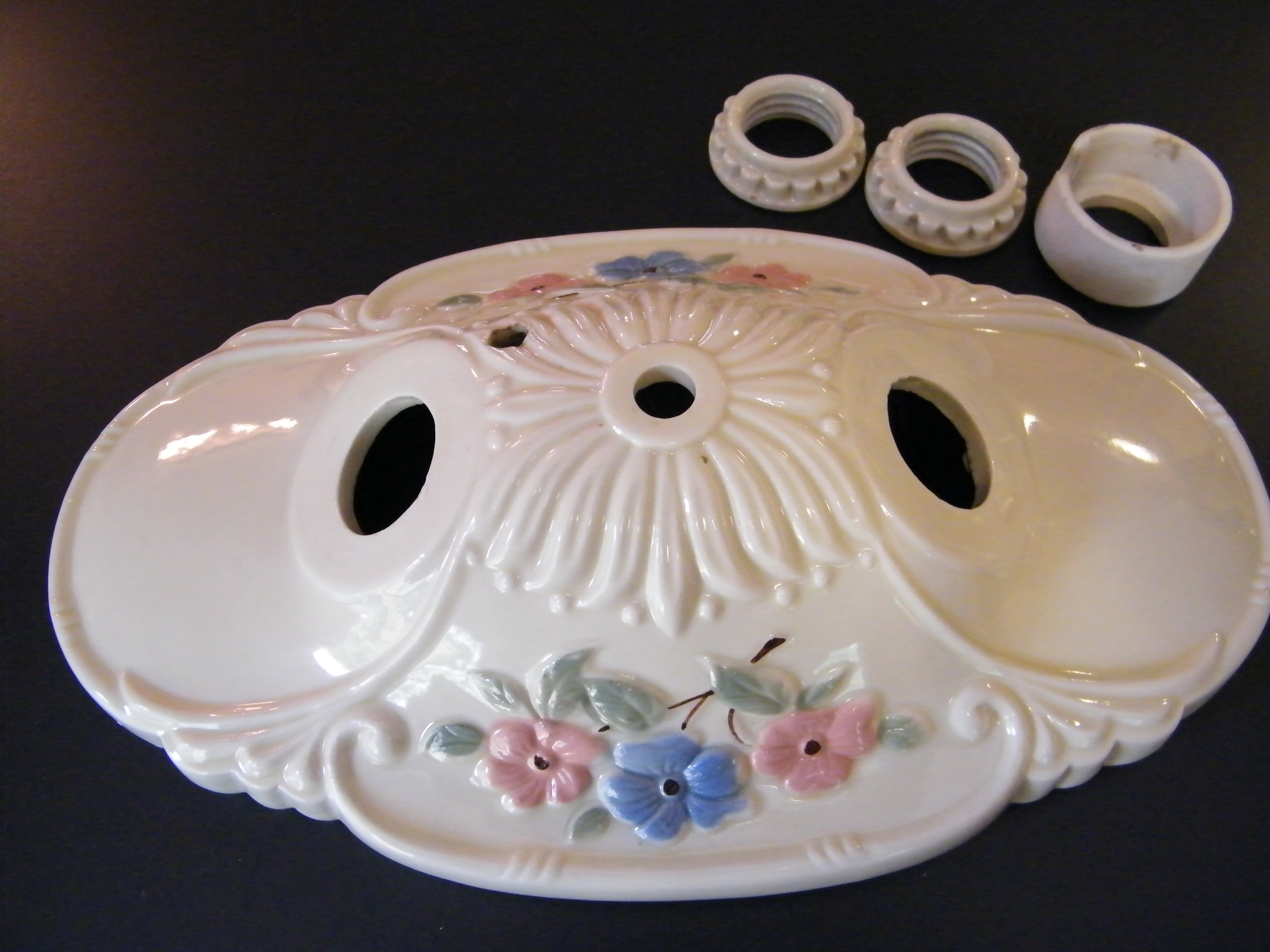 These light fixtures were taken down from the ceilings of my 1948 built home. I have 4 light fixtures holding 2 light bulbs and 1 light fixture which holds 1 bulb. Believe they are porcelain. Green tag inside fixture: "Underwriter's Laboratories Inc.Inspected electric fixture issue A-38, 998, Porcelier trademark".
