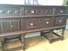 Arched door on left and right side opens to reveal a shelf and a slide out drawer. Leftt side slide out is a two level piece and bears the stenciled mark of 194-66 on bottom. Right side is single level pull-out with no markings.