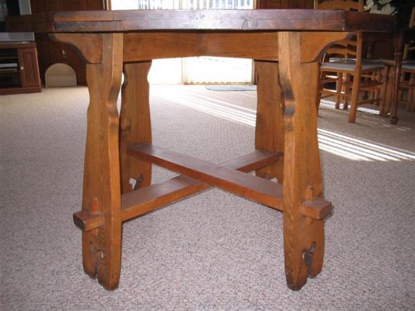 This table was unfortunately stripped of it's original finish, which I was told was ebony. There's no paper or wood burned markings on the bottom. The Limbert catalog of 1903 or 1905 shows a table identical to it. A paper label would have been used during this time, so if it is a Limbert, the label's long gone. It is for sale by owner, make offer.