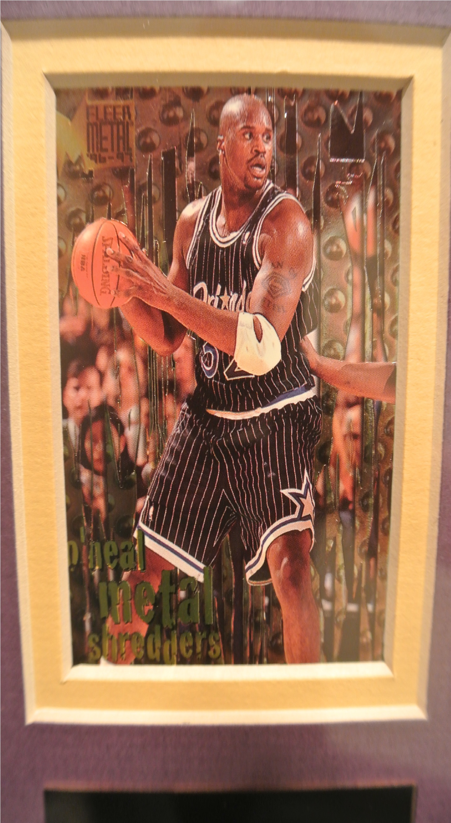 Two 8x10 photos of Shaquille O'Neal dunking. One is signed by him himself. Two cars are also included. One is 96'-97' that says "fleer metal" and "o'neal metal shredders". The other card is from upper deck and says "Encore" and below that "Shaquille O'neal"