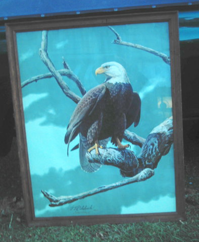This is a 28" x 36" limited addition Bald Eagle print done on cavas not paper by Guy Coheleach and is framed. It is perfect condition and is also signed & numered (99/1000) by Mr. Coheleach.