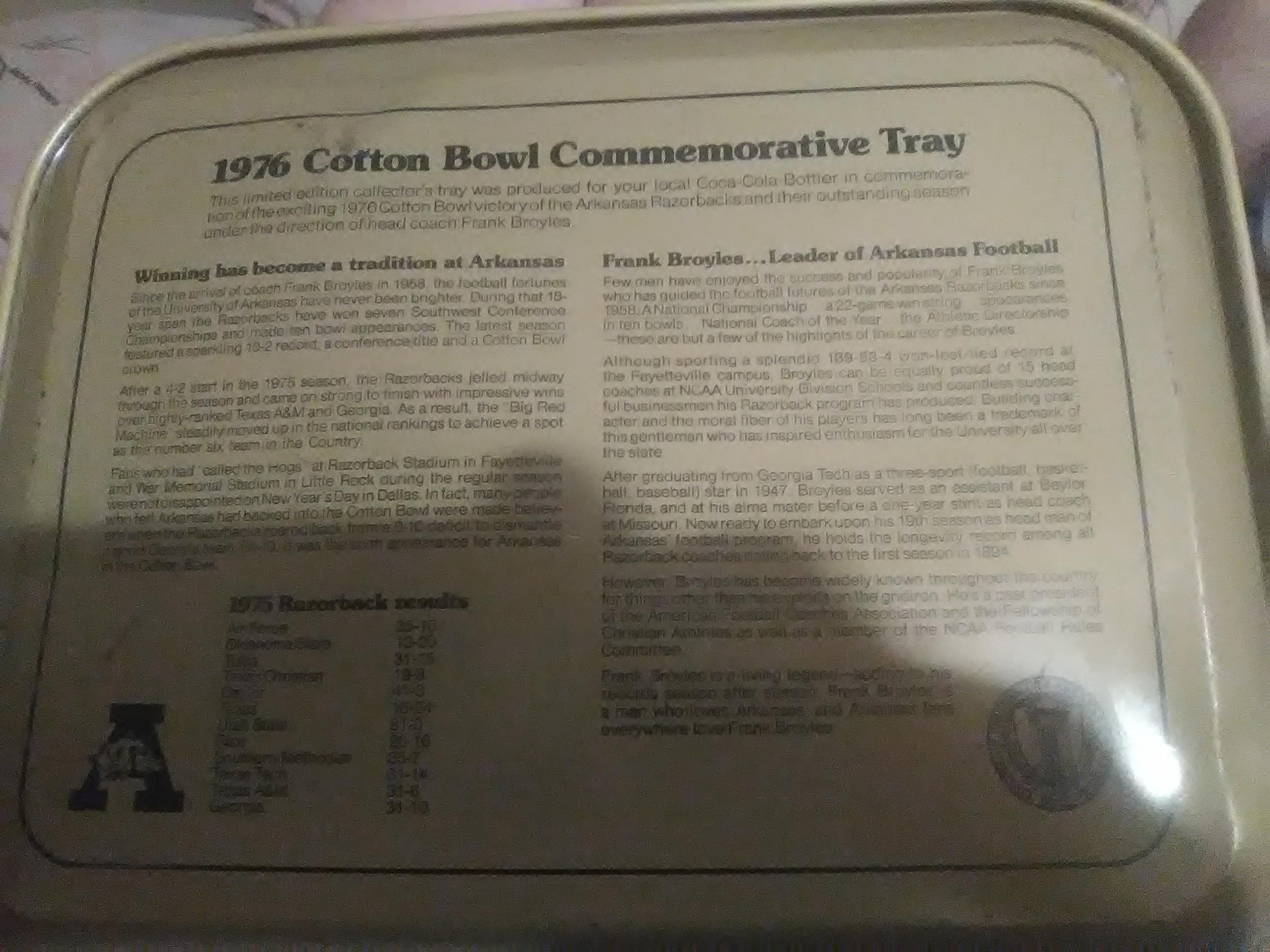 Limited edition coca cola 1976 cotton bowl commemorative tray