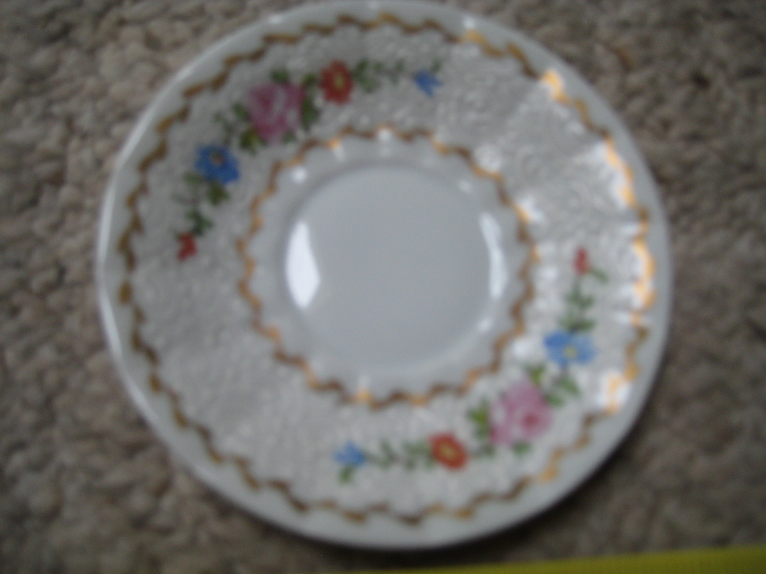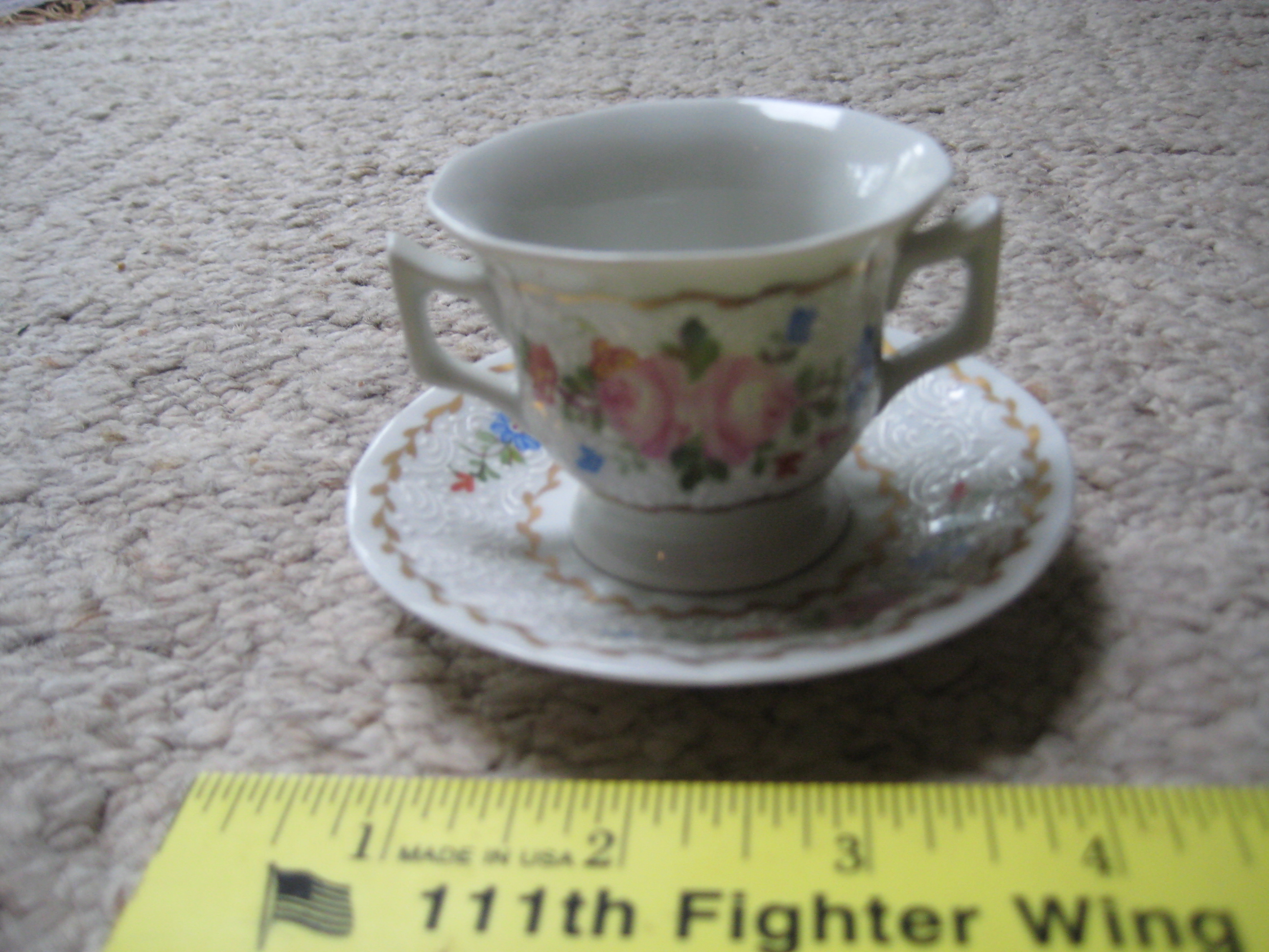 Bottom of saucers say "Hand painted Expressly for Michel Swiss (?) Paris
