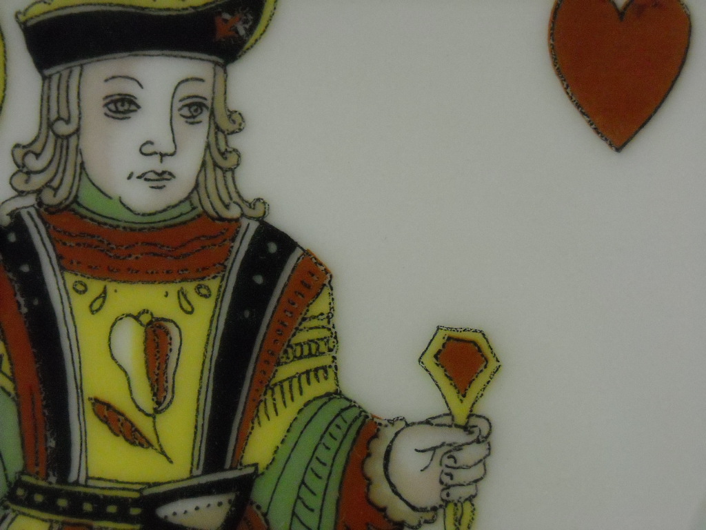 These appear to be hand painted from the stroke marks. The "suits" , clubs, hearts, etc., have the stroke marks from the brush, however the Queen & Jack do not show strokemarks.