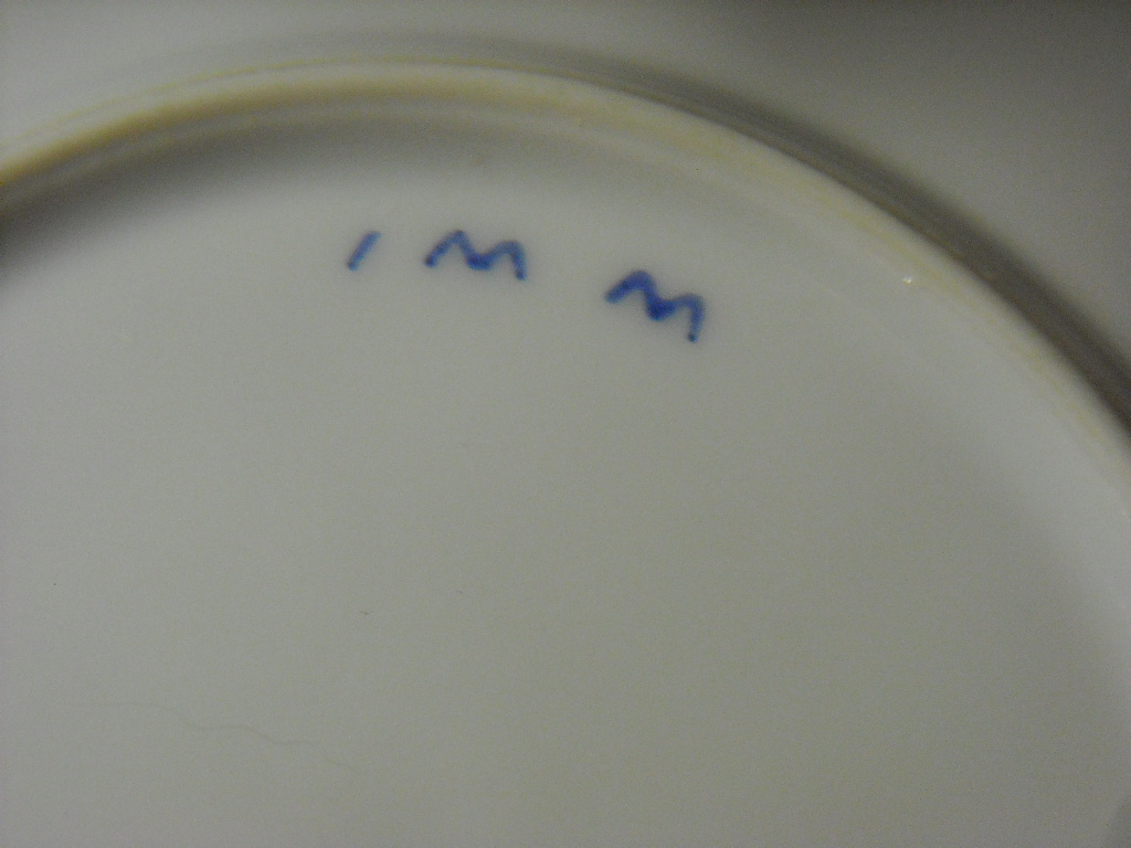 There is a blue hallmark on the back & after looking at the strokes it appears to be imm or 1mm rather than ww1 or wwi on what i belive is on top of the glaze.