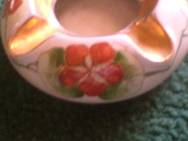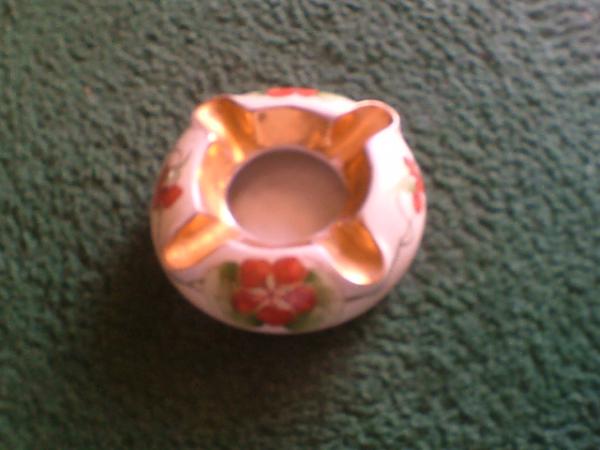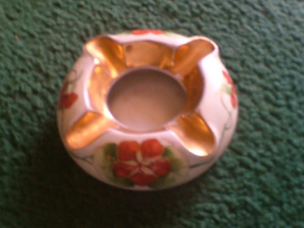 Limoges,France ashtray with flowers and gold decoration.singed steve on one of the flowers.