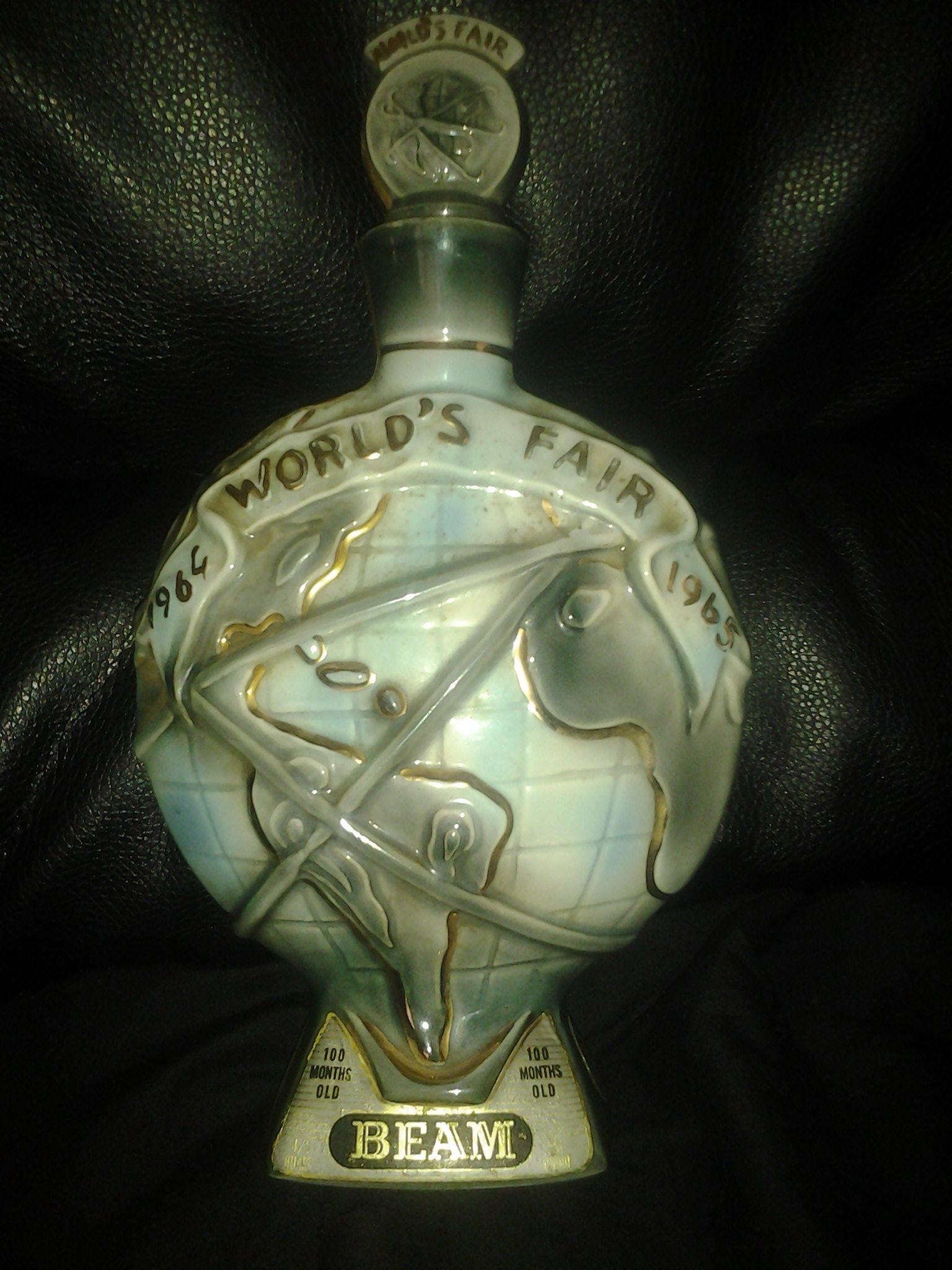 1964-1965 worlds fair jim beam bottle it also says 100 months old there is a sticker on the side that says genuine regal china handcrafted