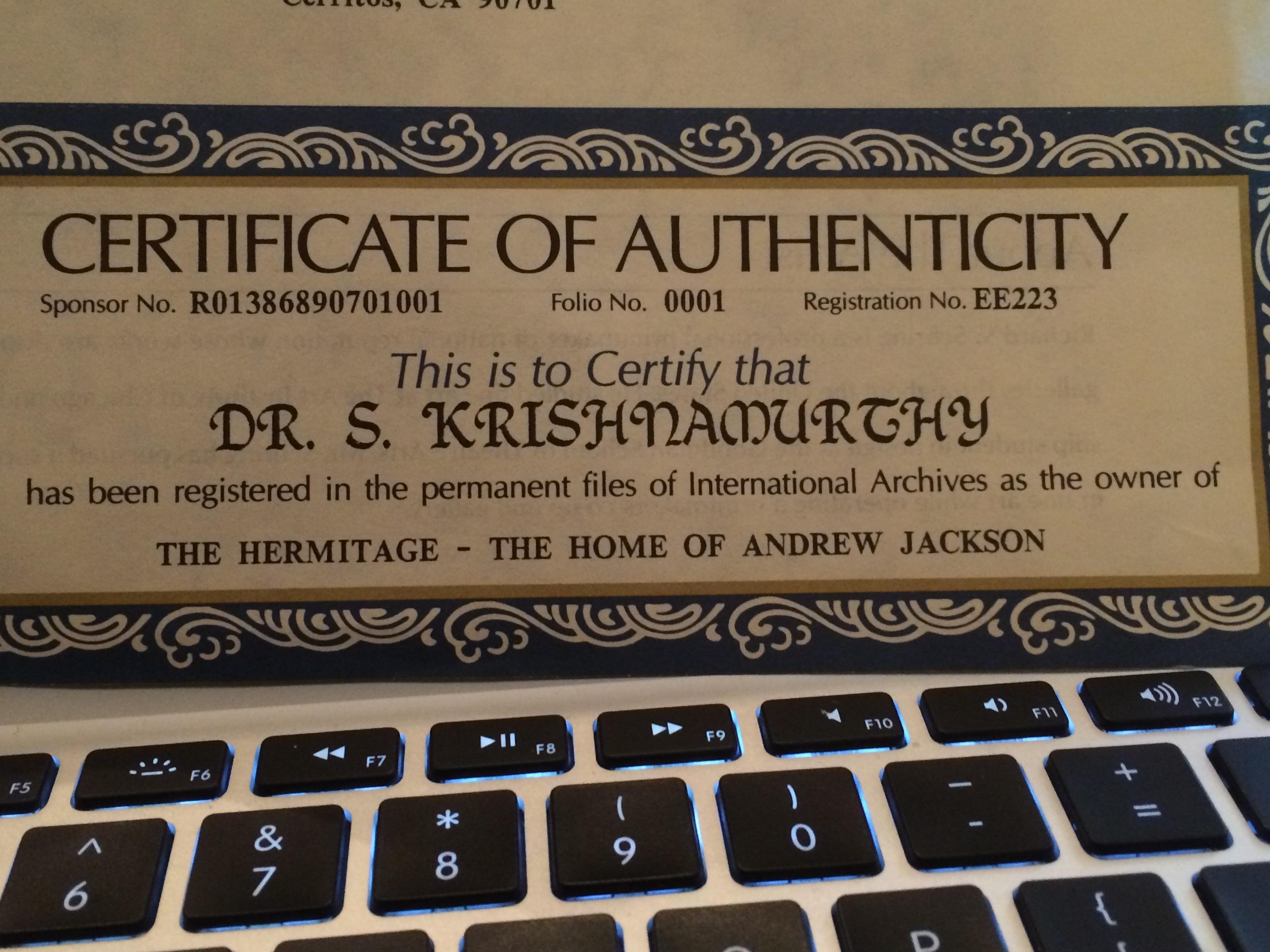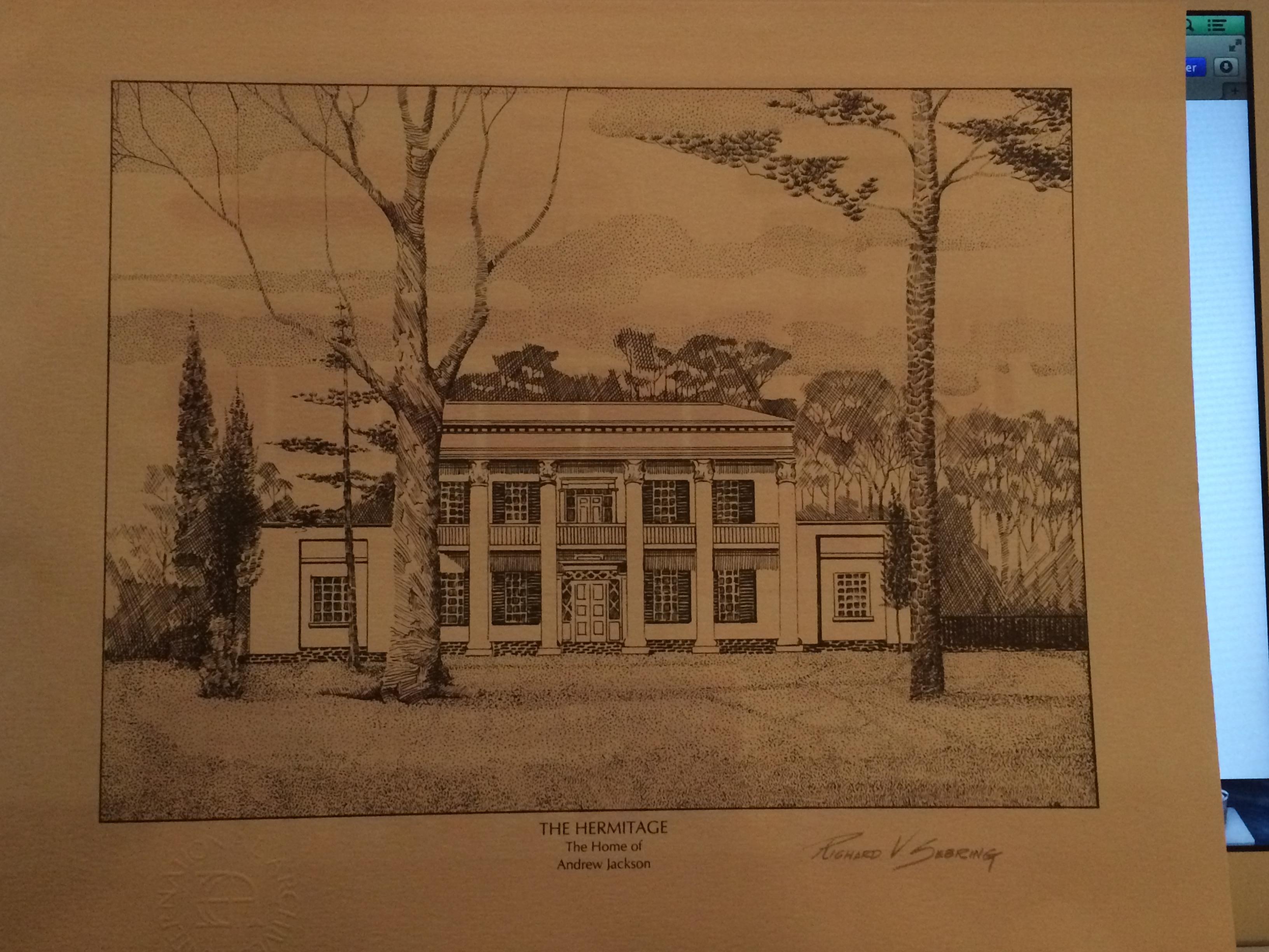 A Limited Edition, lithograph collector's print of The Hermitage, the home of Andrew Jackson, the seventh president of the United States. Executed by Richard V. Sebring, a celebrated American artist. Certificate of Authenticity is attached.