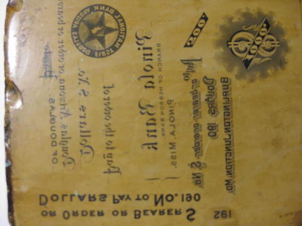 One side has multiple banks listed (Douglas Arizona First National Bank & Pinola Bank - Pinola, Miss.). They appear to be possibly intended for printing checks or similar. They both have wording "Pay to order or bearer".