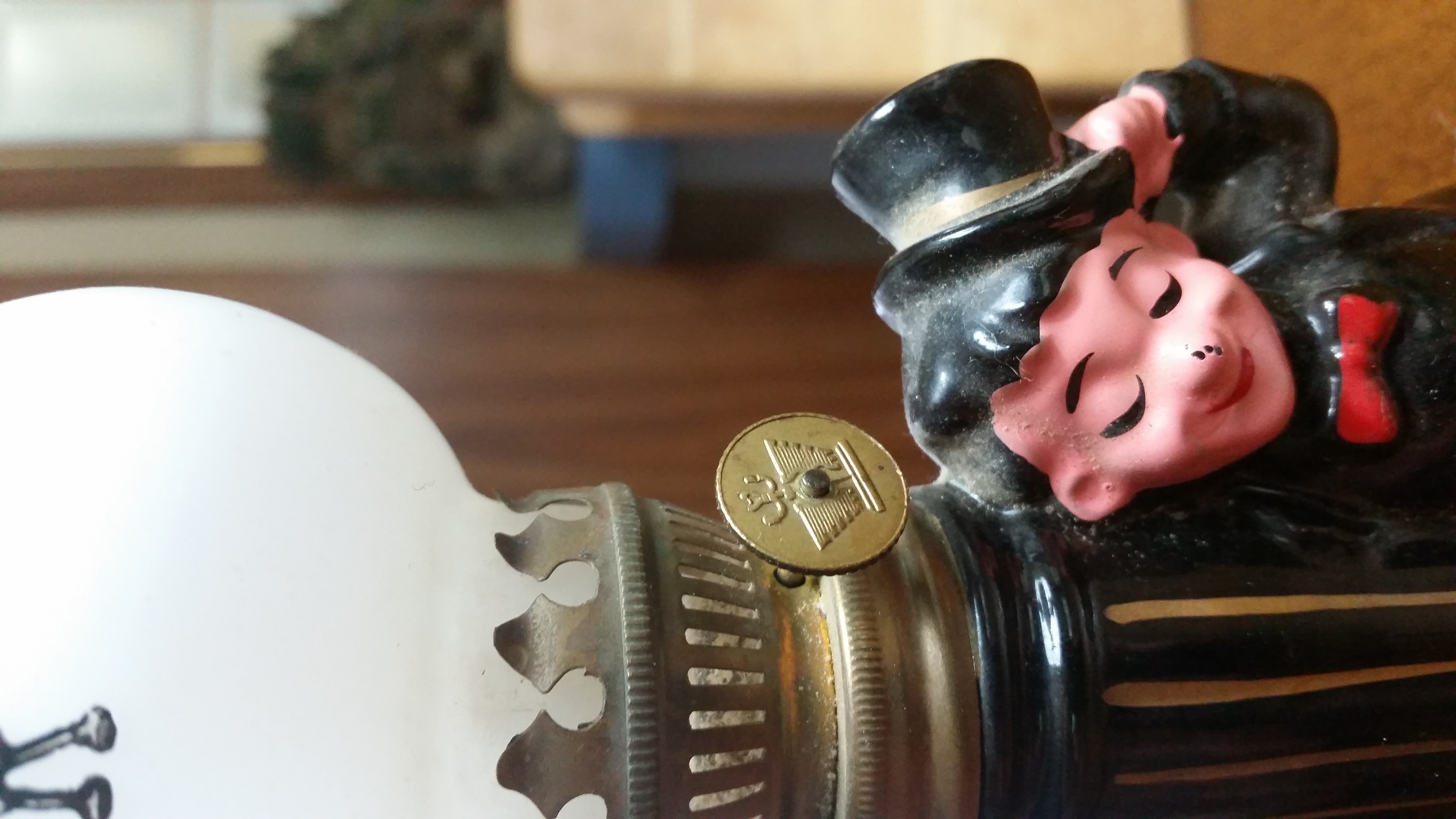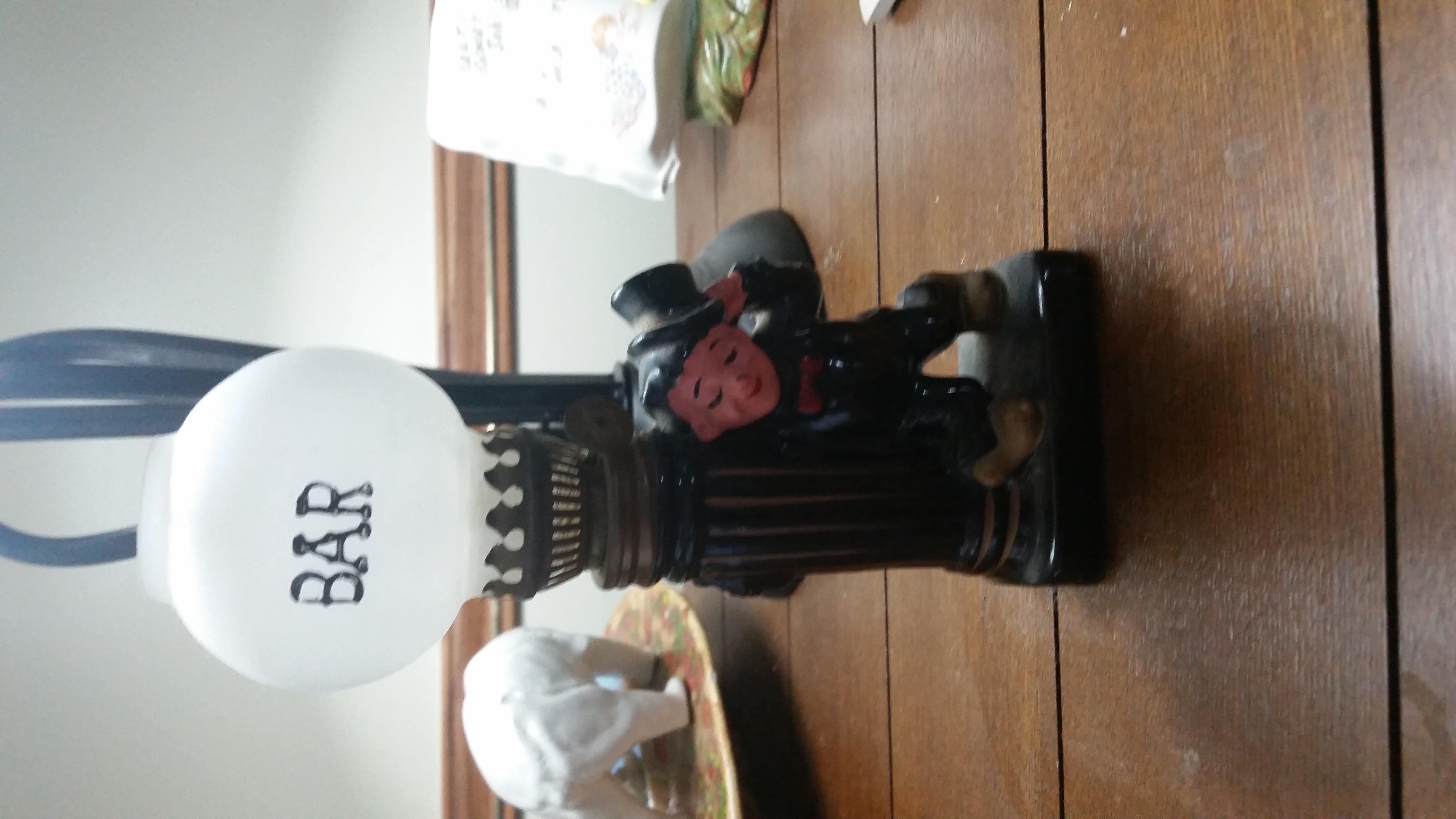 This Piece I Have no idea what it is called and really dont see any identifying marks but it looks like original paint the bulb is glass the wick is real you can actually lite it but never have and i think its made from porcelain not sure never seen anything like it if anybody can help identify will be big help ty