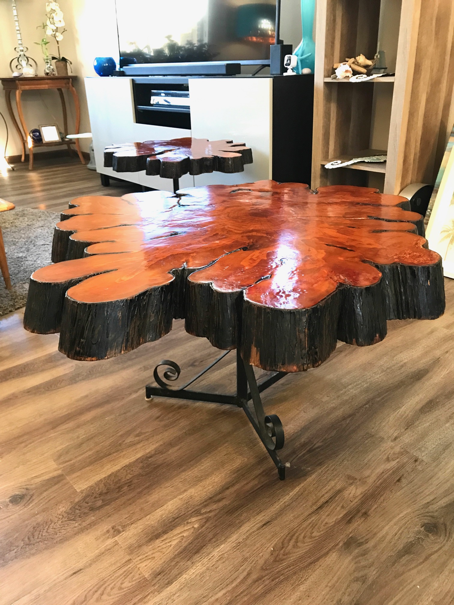 Live Edge Redwood Wood Slab Coffee and End Table