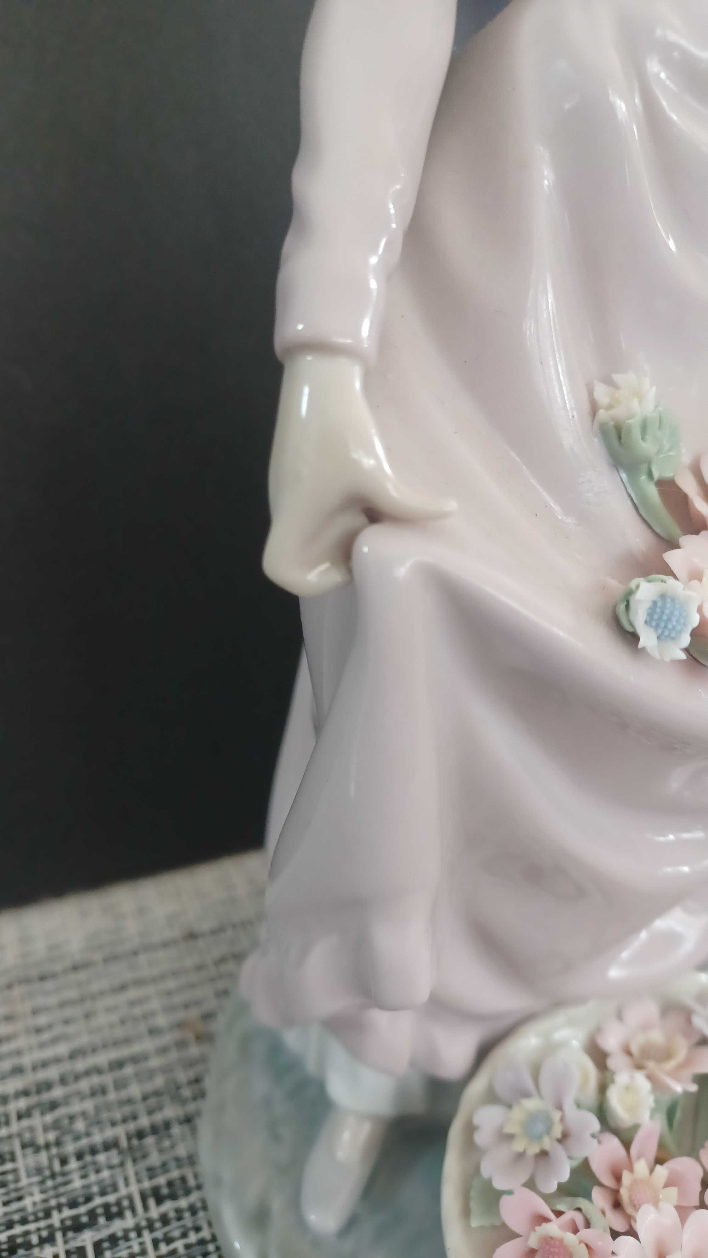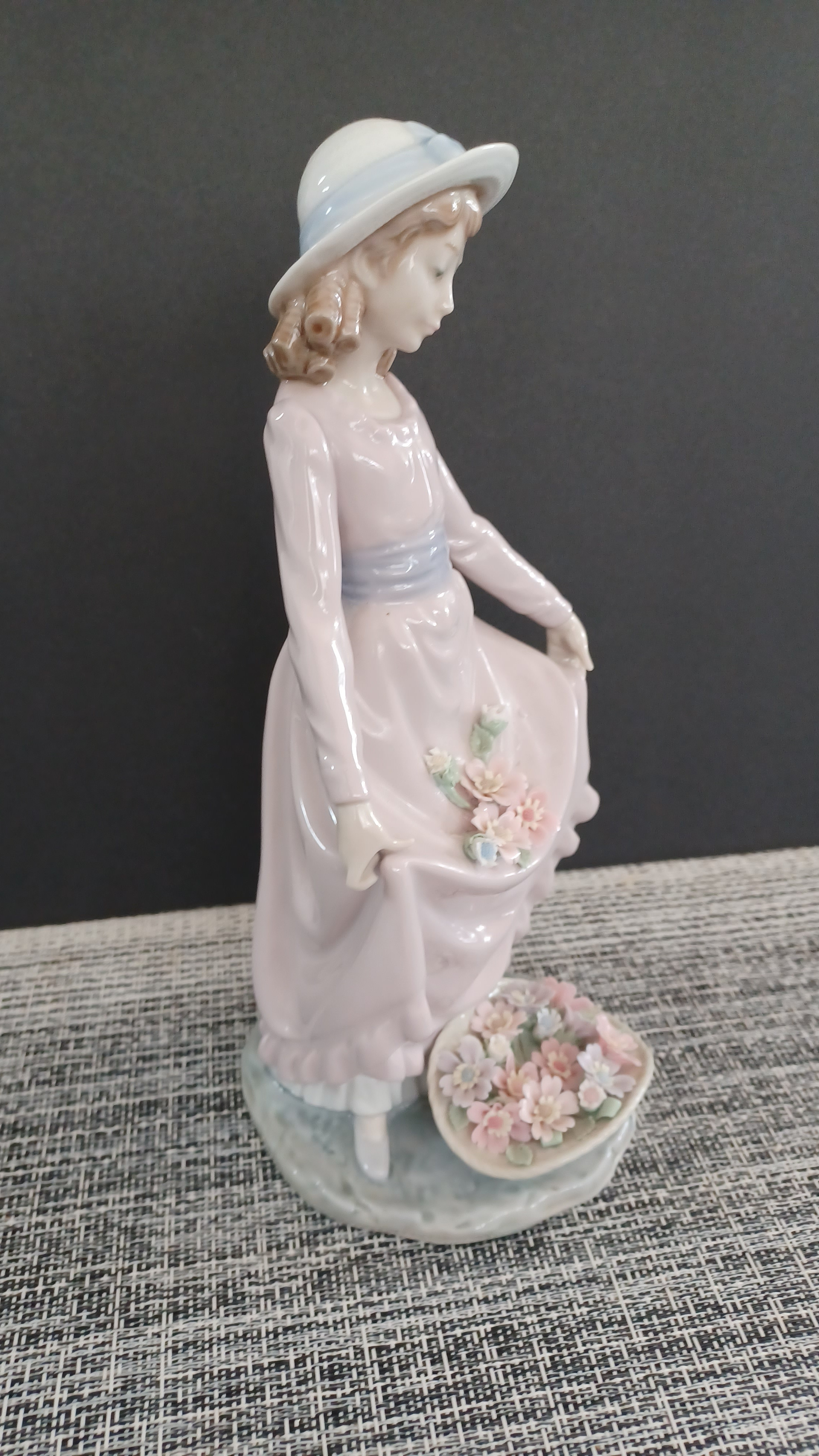 Lladro Porcelain Figurine – Young Girl with Basket of Flowers