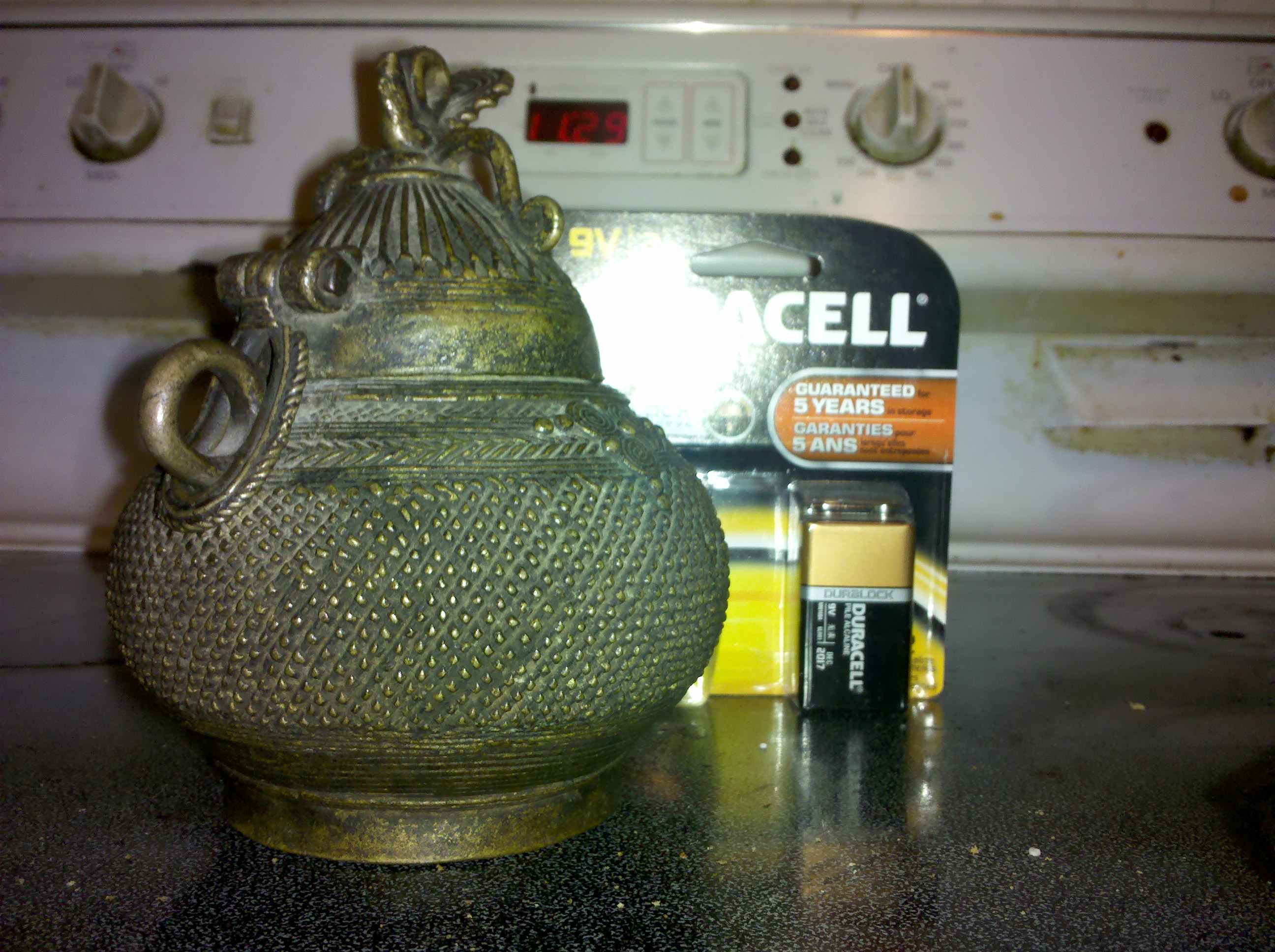 I dont know alot about this item at all. It seems to be made of bronze/brass or maybe even copper. It is built well. The inside has an appearance of 'cast iron backing'. The unit is NOT symetrical. here is a link to a gallery of pictures http://imgur.com/a/h7DKO .