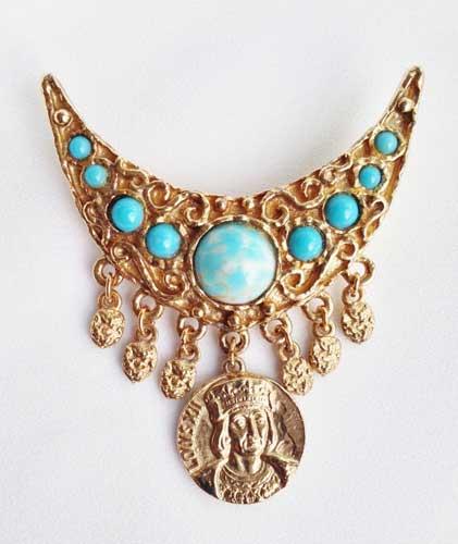 6-small egg shaped tassells hanging from the bottom with a coin like center peice 3/4 inch inscribed is louis VII ,and his picture also like a coin.
