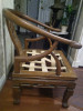 These two metal rings are approximately 4 and 5 inches in diameter, roughly in the shape of a horseshoe, but rounded, and each end is adorned with an octagonal "ball" with alternating patterns of a triangle with three dots inside and a square with a grid pattern inside. They appear to be possibly brass with some green tarnishing in spots. The larger of the two rings also have a series of dots on the top. The shape is not uniform and appears to be hand formed and fairly rough. The larger ring is about 2 lbs and the smaller ring is about 1 lb.