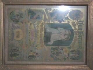 This poster is very fragile and in it's original frame.It has a gold sparkle in the paint on it. I have looked it up on the web and can only find little info about it.