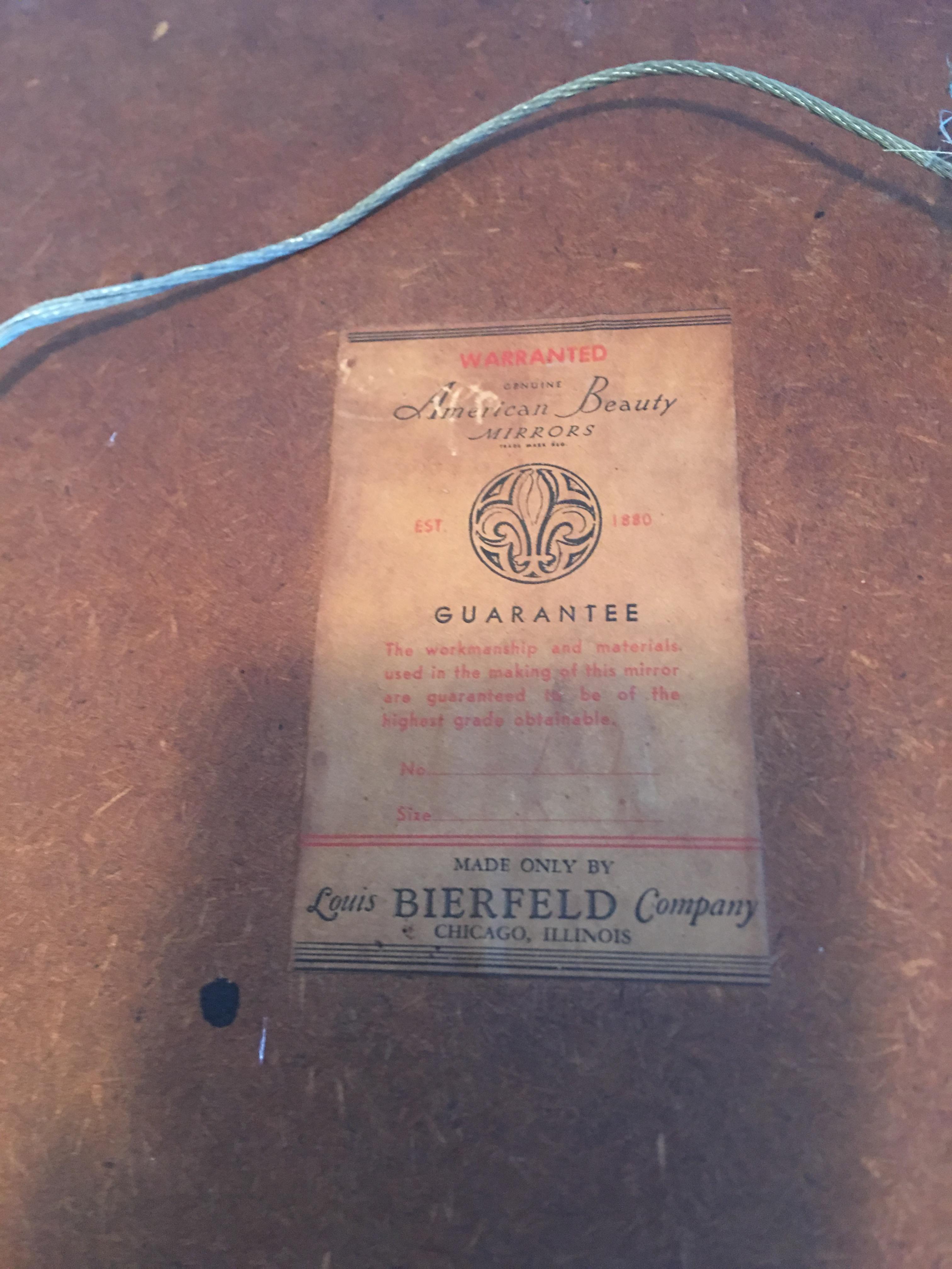 I have a Louis Bierfeld etched mirror. It measures 20” by 26”. Beveled edges and etched with 4 branches of a floral design. What is it worth?