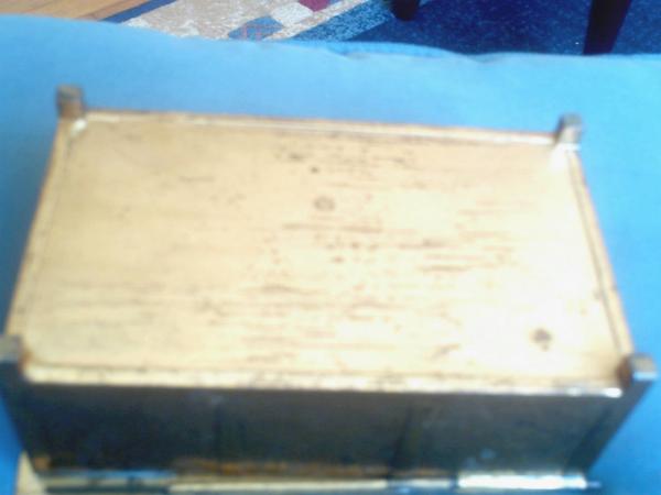 The box is in good to fair condition as the hinge on the left hand side of the lid needs to be repaired. It is a footed box and has solid bands going down what looks like a sponge pattern. There are enamel designs of yellow, teal and blue. I know the colors would be more vivid with a good cleaning. There are no dents only normal wear from age. The botton is marked Louis C.Tiffany Furnaces, In 131 Farvile and has a capital L in the middle of a circular design. Can any one tell me the age,pattern or worth of this box.