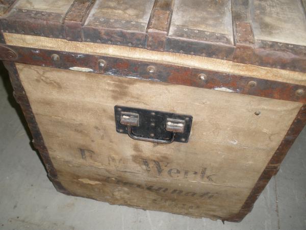 The trunk is done in the Trianon gray canvas with iron fittings. This is an earlier trunk around 1860-1880