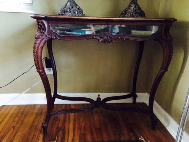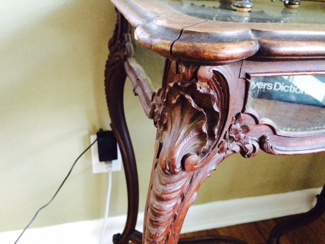 I believe this table is from 19th Century. It is not in perfect condition, as the fragile legs have been re-glued and one corner of the top is separating slightly.