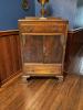 The table has leather top with gilt stamped and paint. The dimensions are 48(l)-24(w)-30(h).