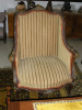 Two antique louis xvi fauteuils, with wood and gilt frames; heavily survface carved with anthemion, laureal, acanthus, egg and dart, and beaded design motifs; resting on four straight heavily carved reeded legs, with paterae designs apron carvings; upholstered in celadon‐colored leather, with single loose cushion seat, nailhead trim. Circa 1790 26” wide.