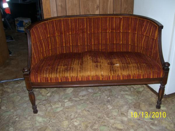 It is a lovely wooden loveseat, I was told it was an antique, but I have no idea.  That is why I am here. It is still in use and still comfortable... can you tell me anything about it.