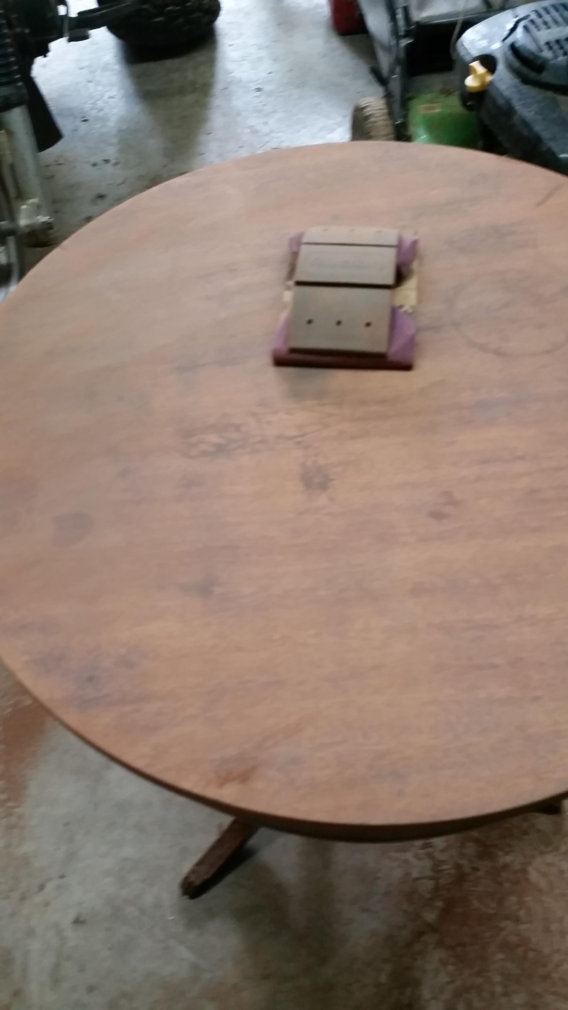 Round table one small drawer with lion head knob on pedestal with three legs with lion claws